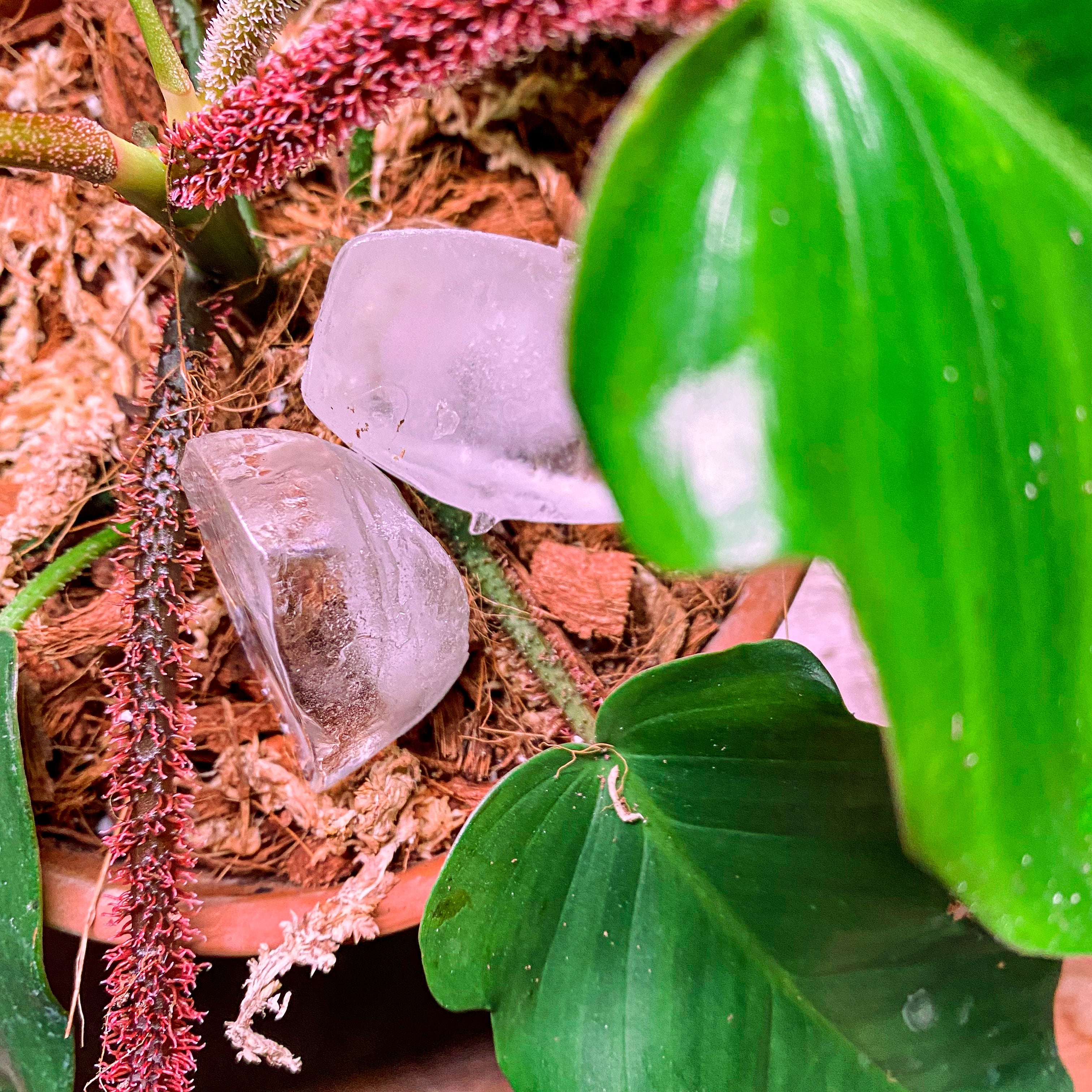 If you use ice cubes, picture how much water an ice cube contains, a pretty small amount, that is going to leave your plant thirsty for more! Ice cubes are not nearly enough to saturate the soil of your plant. Additionally it is going to water the plant inconsistently.