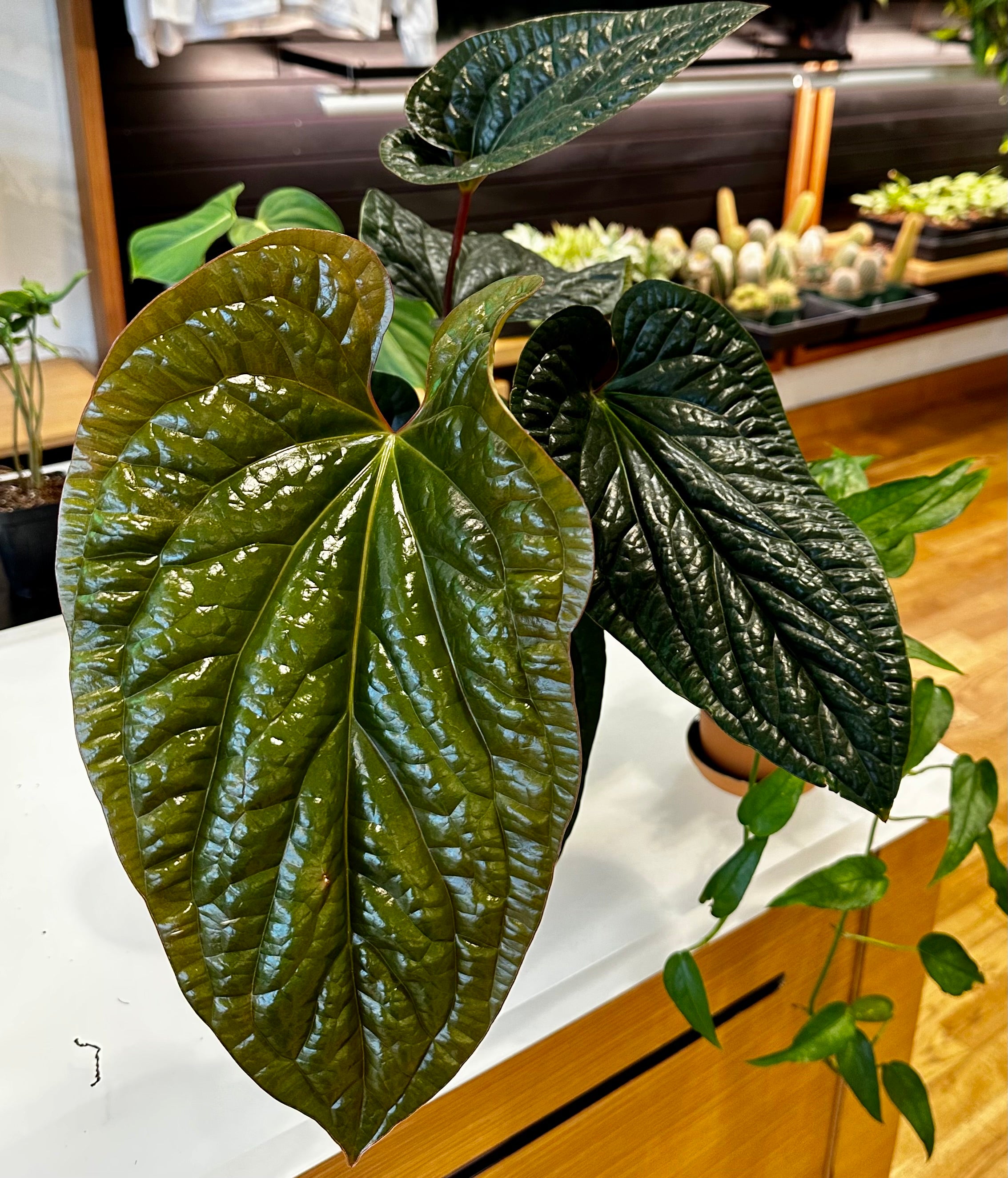 With the velvety leafed Anthurium steating all of the Anthurium lovers’ attention, the Anthurium Radicans x Luxurians (Rad x Lux) hybrid is left in the back of the greenhouse forgotten about. Don't make the same mistake! The Rad x Lux is a beginner freindly Anthurium, unlike its instagram famous sibling, the Anthurium Warocqueanum. The leaves look and feel like the back of an alligator, making it unique and stunning. Don't be scared though, this budget friendly Anthurium is sure to steal your heart!