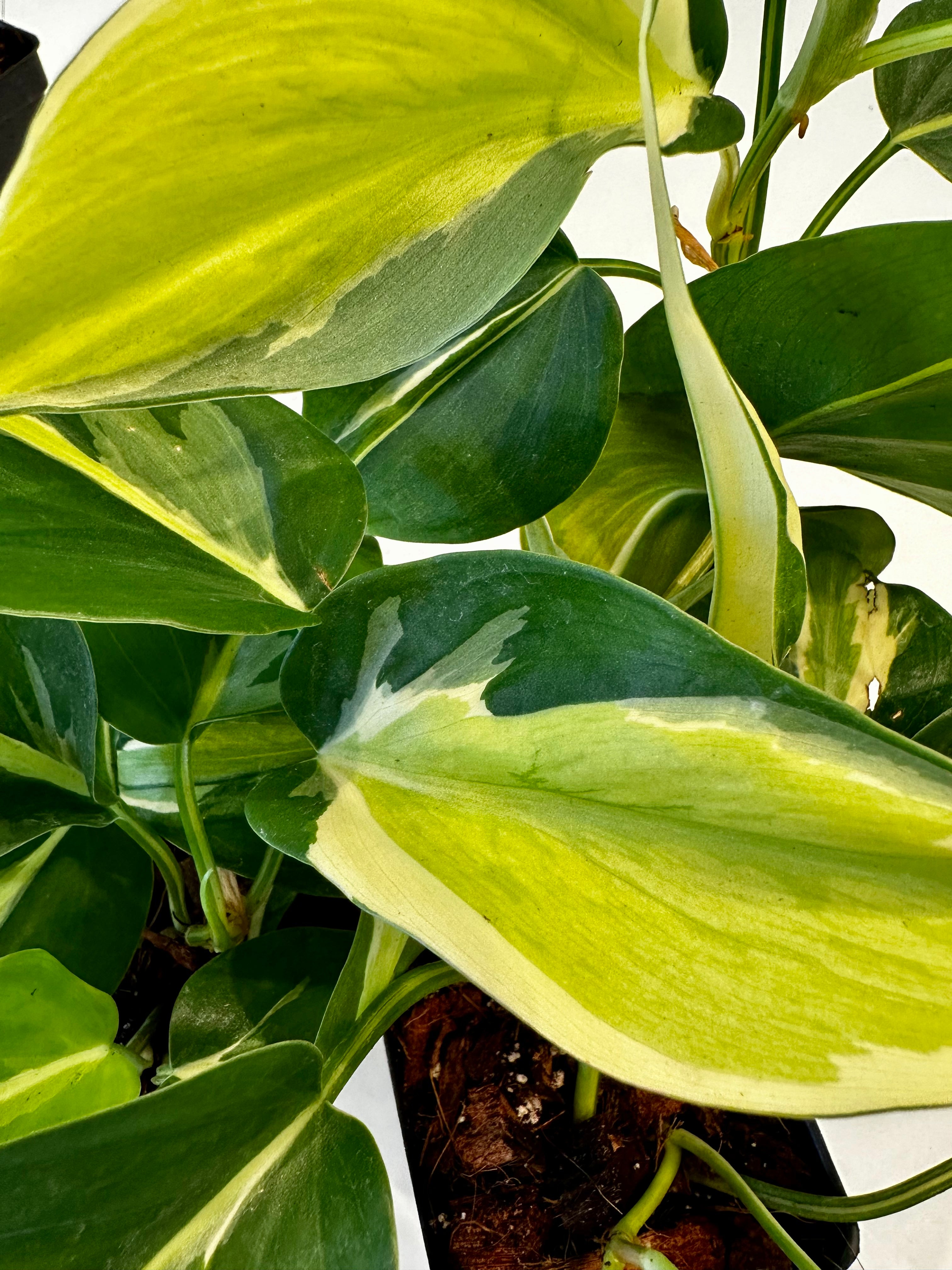 There are seemingly endless Philodendrons to add to your collection, so it’s normal that some flashy philos take center stage, like the Philodendron Florida Beauty. The Philodendron Silver Stripe is a good example: it’s more famous sibling, the Philodendron Rio, often steals the show. Don't make the mistake of looking past the Silver Stripes’ beauty, though! With adorable heart shaped leaves that spill over the edge of its pot, they are the perfect, unique trailing Philodendron. The outer leaf rocks a dark green color and is dynamically contrasted by the inner cream color with a subtle streak of silver. Each new leaf gives you a fun, surprise pattern of variagetion.