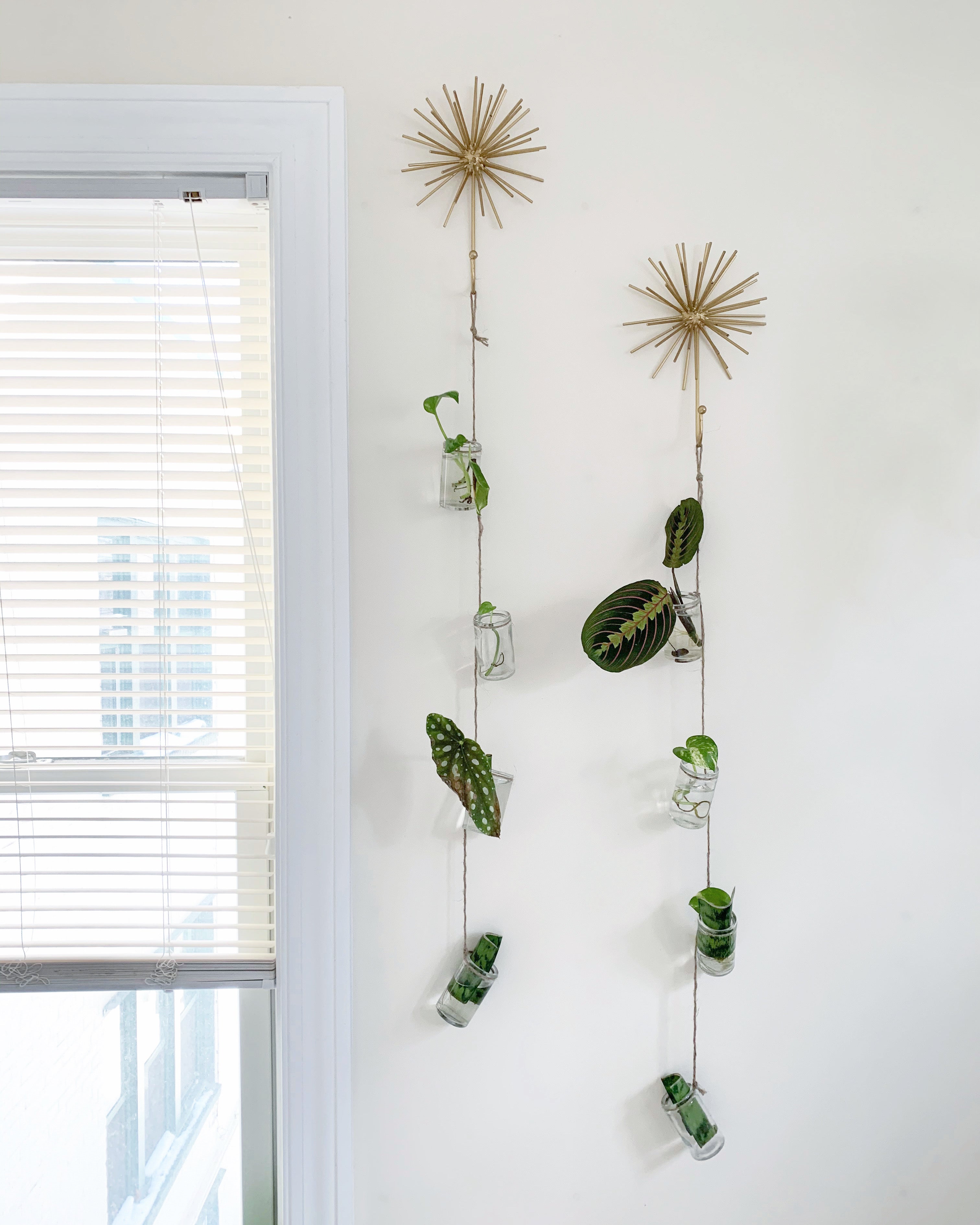 While technically not a basket, utilizing a hanging method to propagate not only saves space but is a more unique way to show off your growing babies!