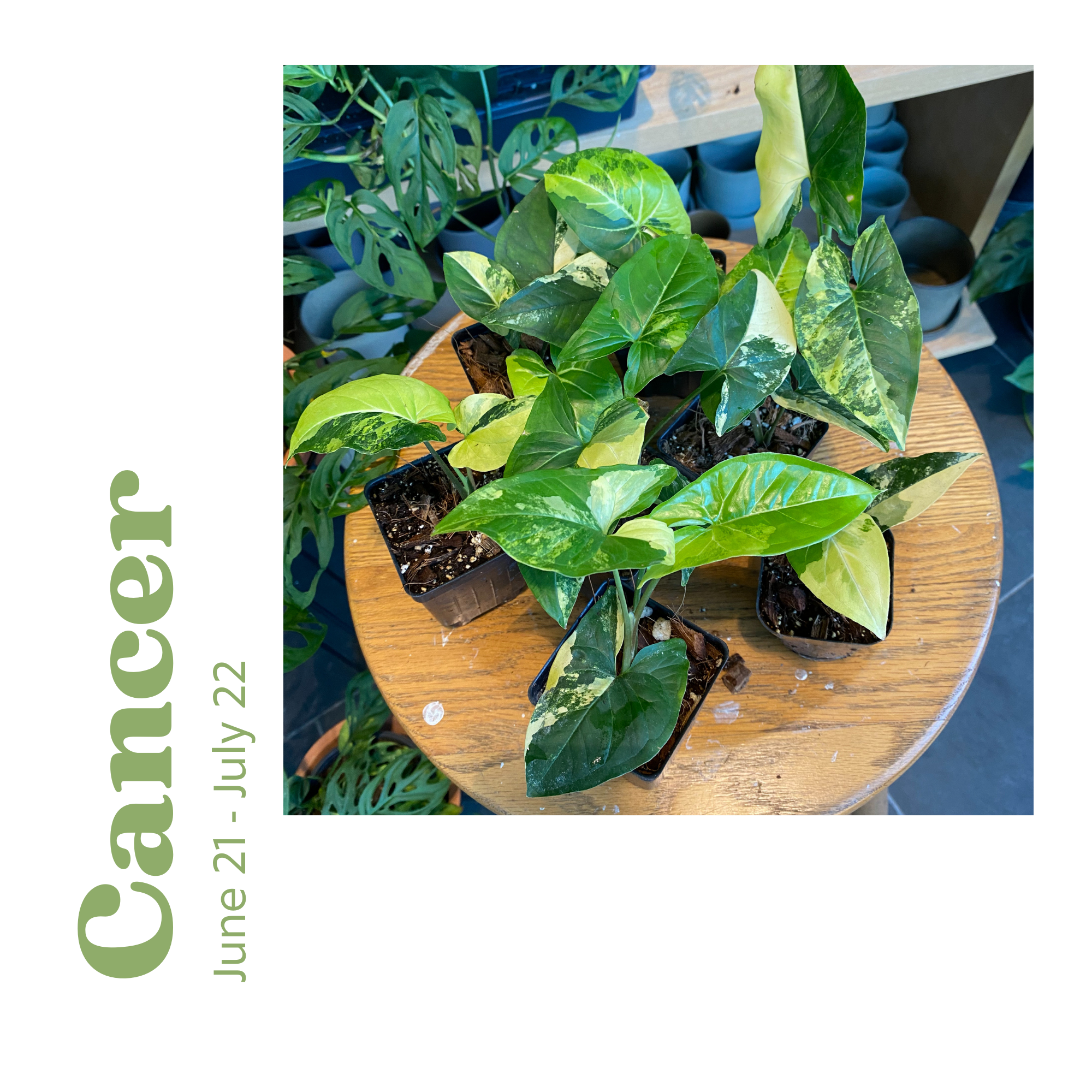 Cancer plant parents are sensitive, loving, devoted, & persuasive. Making the Syngonium Aurea the ideal match. Syngonium are easy-going and will give you endless growth with little effort. Each leaf showing off new and unique variegation. Don’t forget to water them though, they are sensitive to not letting their soil dry out completely.