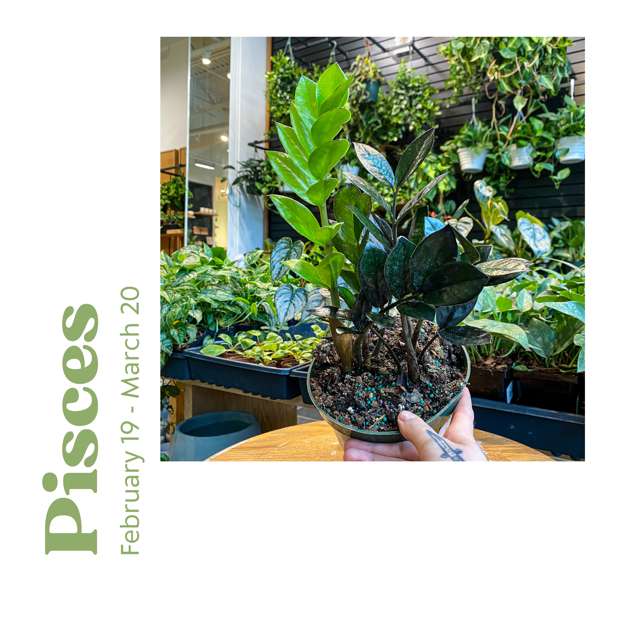 And last, but certainly not least the Pisces. The baby of the zodiac. They are empathetic, gracious, imaginative. The Raven ZZ is the perfect plant for this sign. The unique foliage of the ZZ is unlike any other plant and their care style is as gracious and easy-going as their Pisces plant parent!