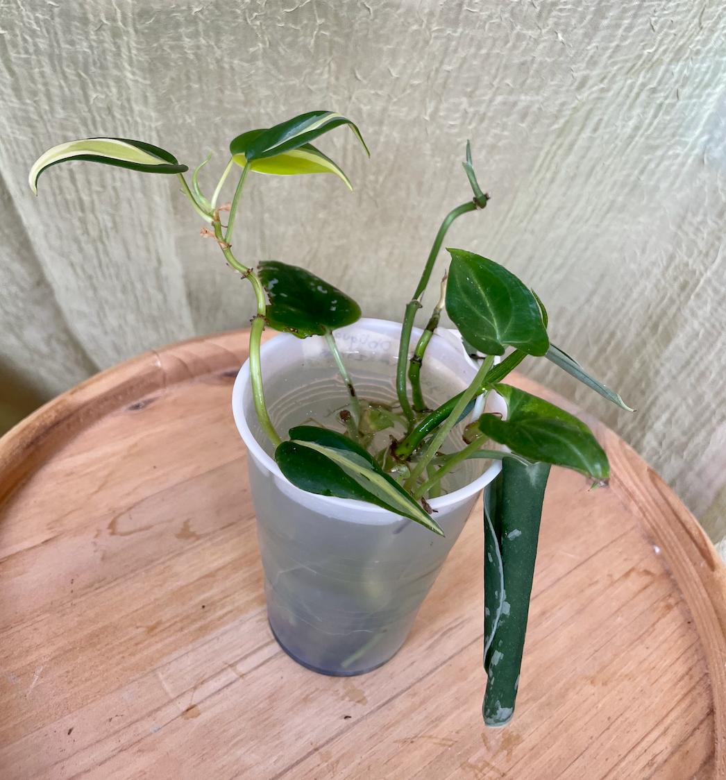 Tip - if you propagate in water, place multiple different plant cuttings in one container to help stimulate faster rooting!