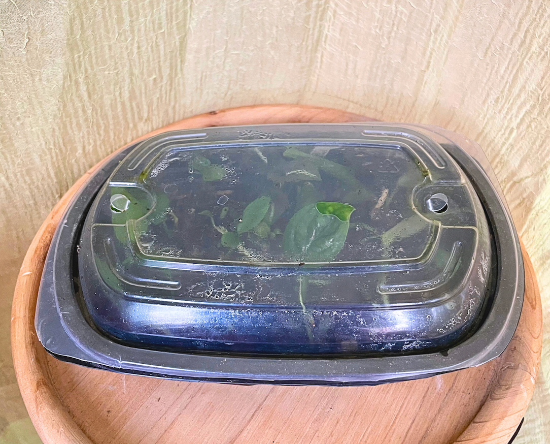 There are number of ways you can now begin rooting your cutting. The most popular methods are water, soil or moss. Choose your preference or simply what you have on hand, after you begin to explore the different methods you will begin to learn what is your preference. No matter what you choose, make sure your cuttings stay consistently moist, have adequate lighting and some air flow to avoid rot (a old plastic container with holes on top may not be the prettiest option but gets the job done!)