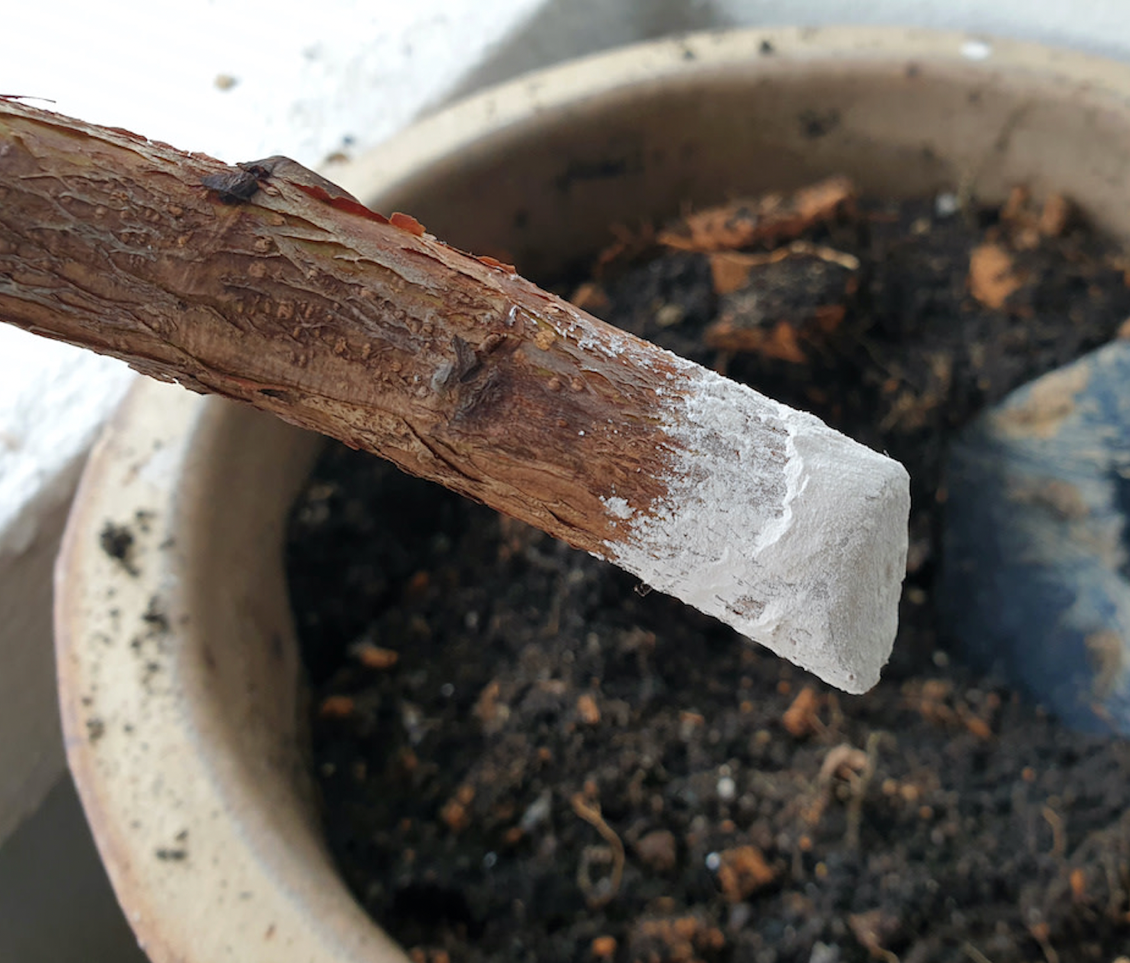 One you have cut the stem and removed the unnecessary leaves, allow the cutting to sit for at least 2hrs to allow it to callus over at the end. Like a cut on our own skin, a stem needs to build up a type of barrier in order to heal properly.