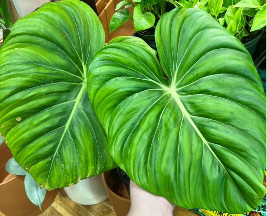 - The Philodendron Splendid sports iridescent, lighter green leaves with prominent silvery-white veins.