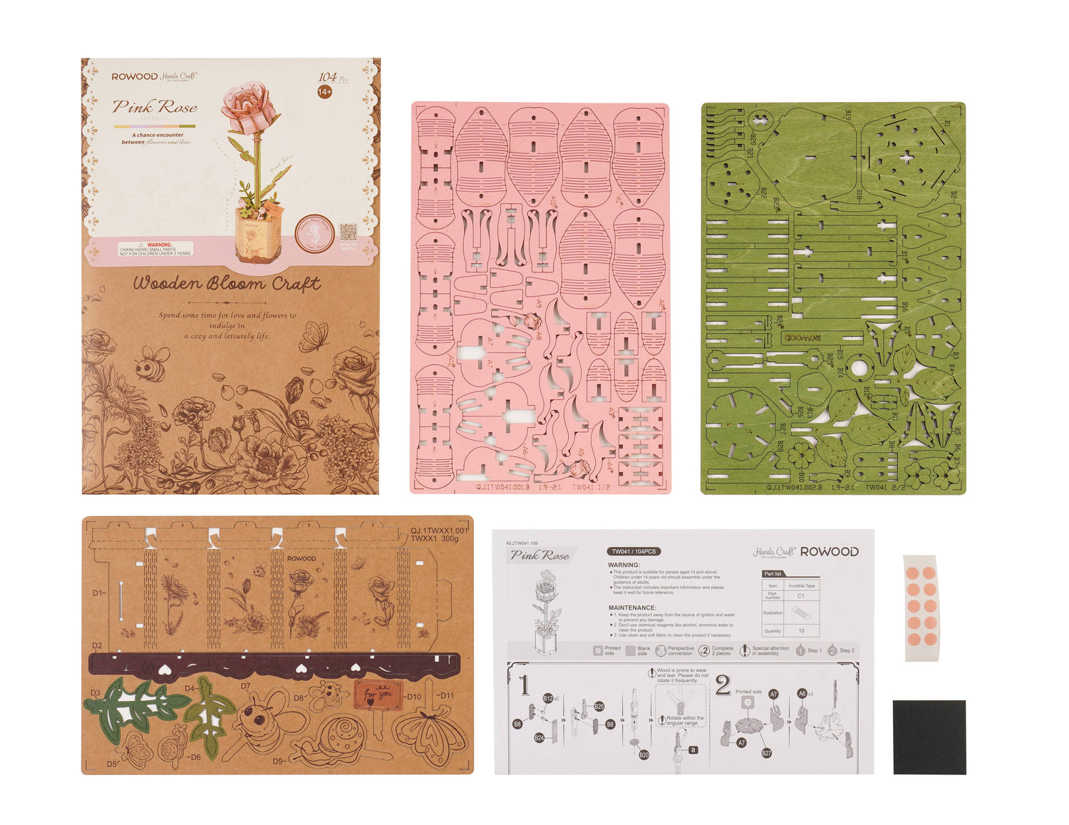 Assembled size: Pink Rose - 3.35 x 2.56 x 8.27in