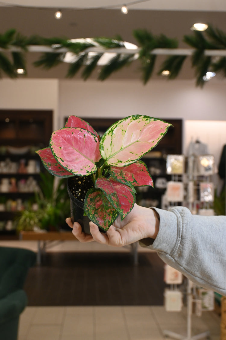 Aglaonema are great beginner plants. Not only are the incredibly easy-going, they are hardy and resilient plants. The crave a semi-humid environment and thrive in bright, filtered light. Water your aglaonema when the soil is dry about 2” down from the top of the pot.