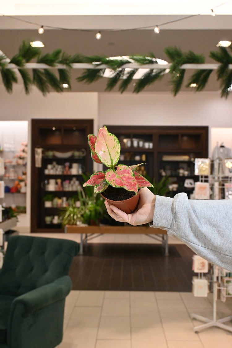 Aglaonema are great beginner plants. Not only are the incredibly easy-going, they are hardy and resilient plants. The crave a semi-humid environment and thrive in bright, filtered light. Water your aglaonema when the soil is dry about 2” down from the top of the pot.