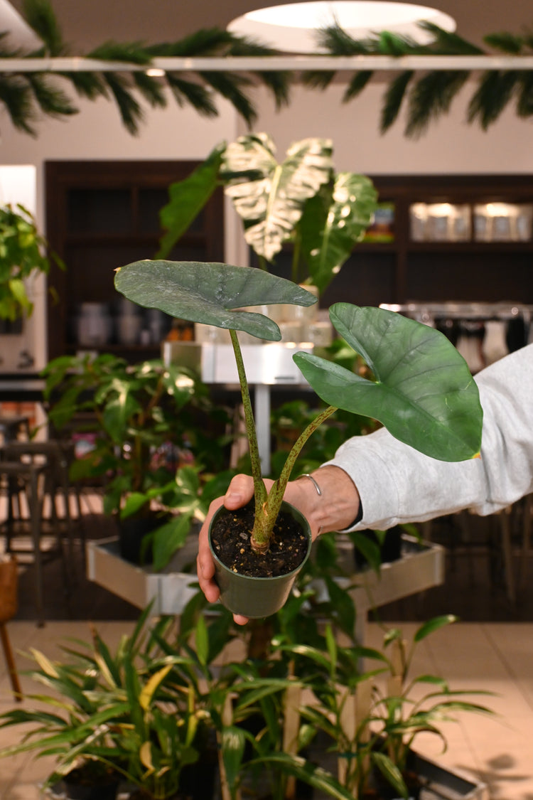 Alocasia plants are humidity lovers and heavy feeders. They prefer bright, filtered light and for their soil to be consistently moist. Water when the soil is dry about 2” down from the top of the pot. Keep your alocasia in a chunky potting mix.