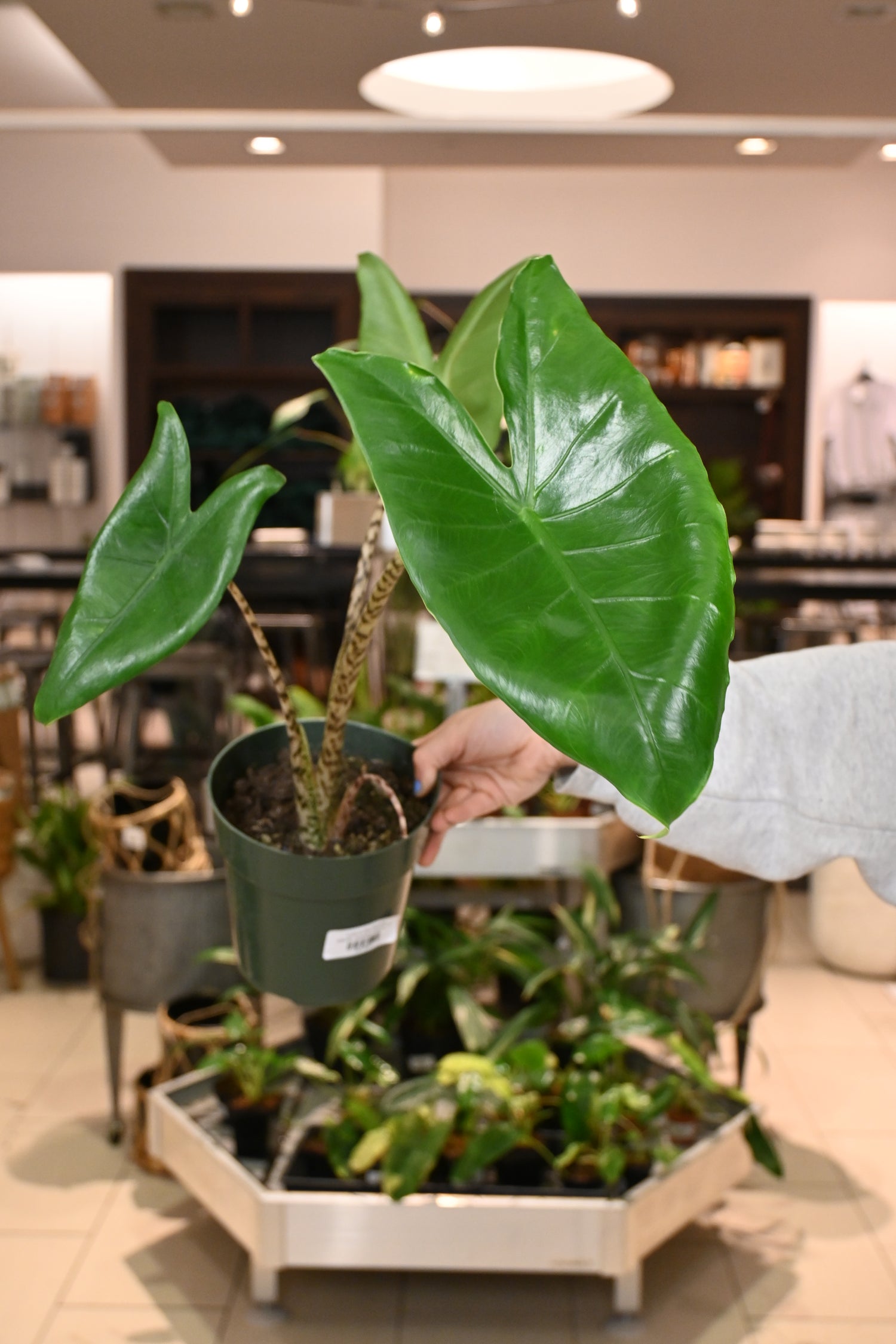 Alocasia plants are humidity lovers & heavy feeders. They prefer bright, filtered light and for their soil to be consistently moist. Water when the soil is dry about 2” down from the top of the pot. Keep your alocasia in a chunky potting mix.