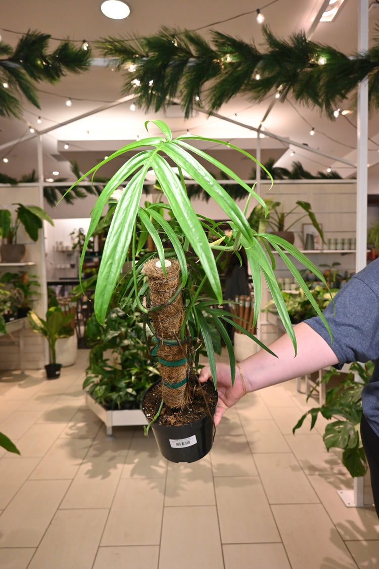 Amydrium plants prefer indirect sunlight. Direct sunlight in the morning is okay as the light is less harsh. They prefer to dry out a bit between waterings, so only water when the soil is dry about two inches down from the top of the pot. In the summer you will likely need to water more often. A well-draining potting mix, such as our Chunky Mix, will let an Amydrium thrive.