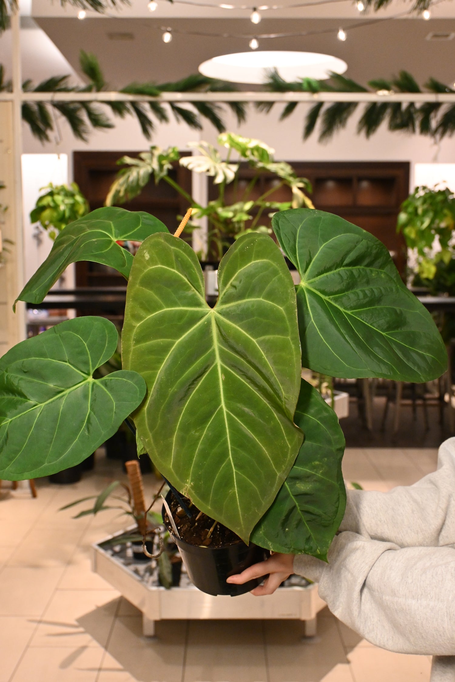 Anthurium plants are humidity lovers and thrive in a bright but filtered light space. Water them when their soil is dry about 2” down from the top of the pot. Anthurium craves an extra chunky, well draining potting mix.