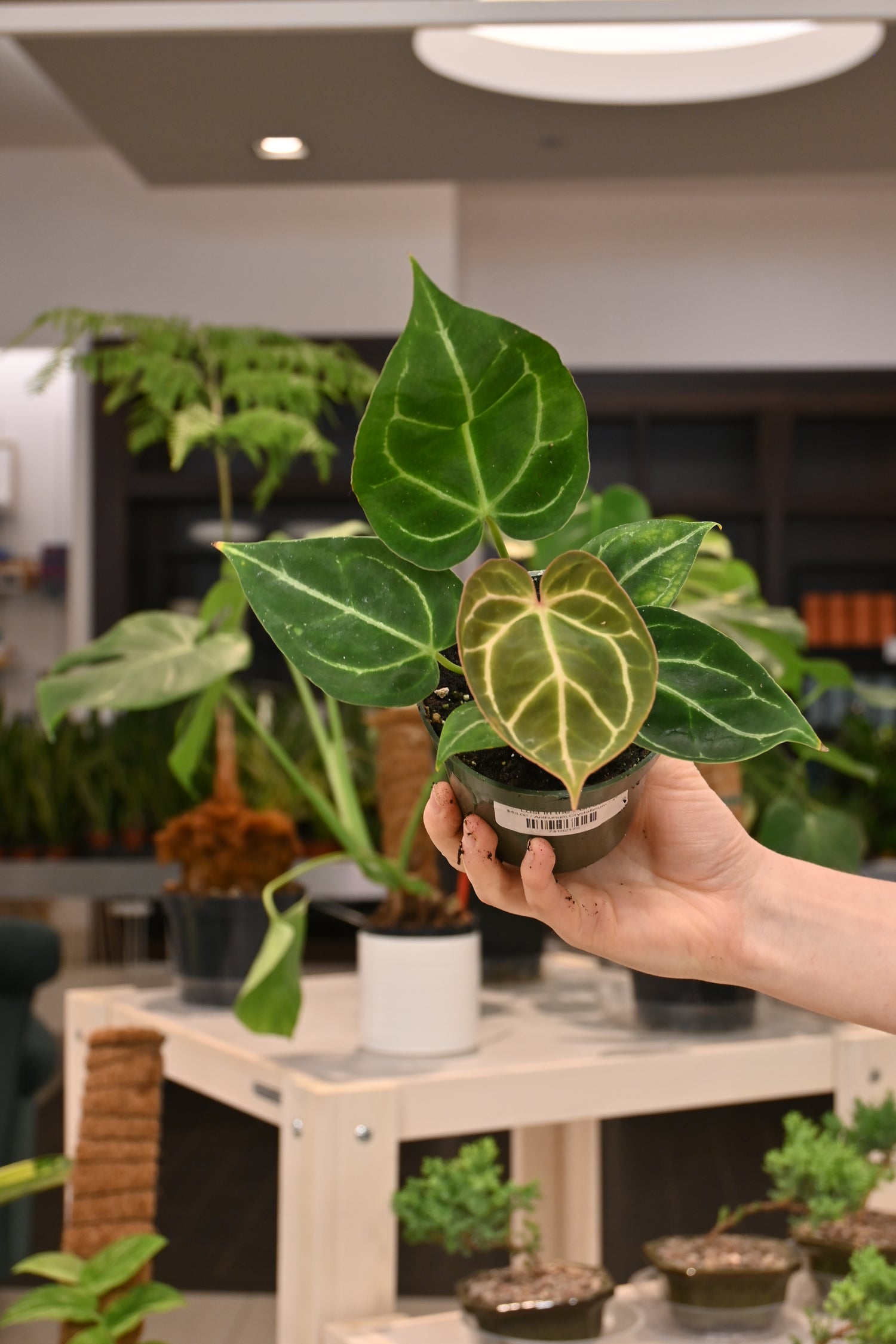 Anthurium plants are humidity lovers & thrive in a bright but filtered light space. Water them when their soil is dry about 2” down from the top of the pot. Anthurium crave an extra chunky, well draining potting mix.