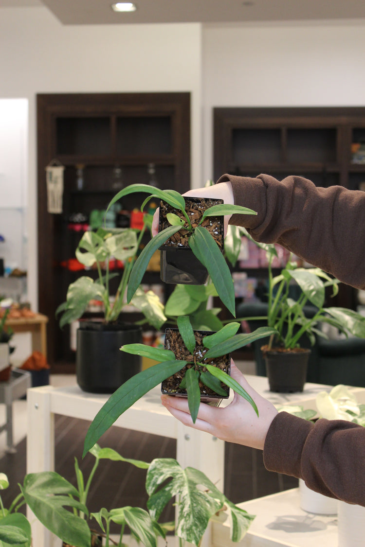 Anthurium plants are humidity lovers and thrive in a bright but filtered light space. Water them when their soil is dry about 2” down from the top of the pot. Anthurium craves an extra chunky, well draining potting mix.