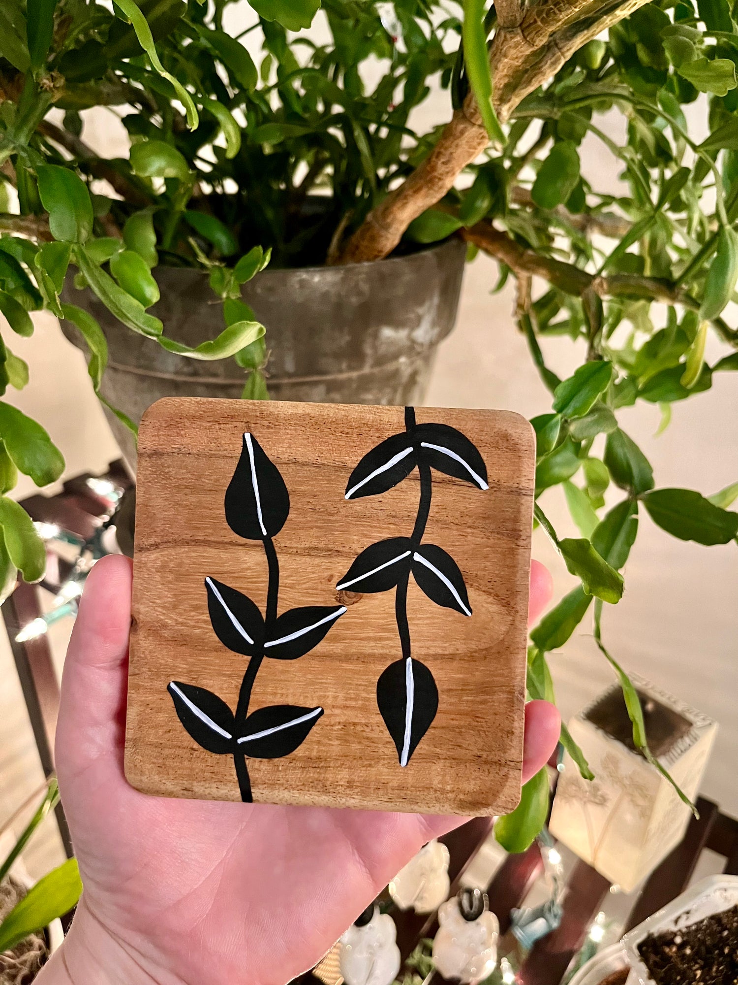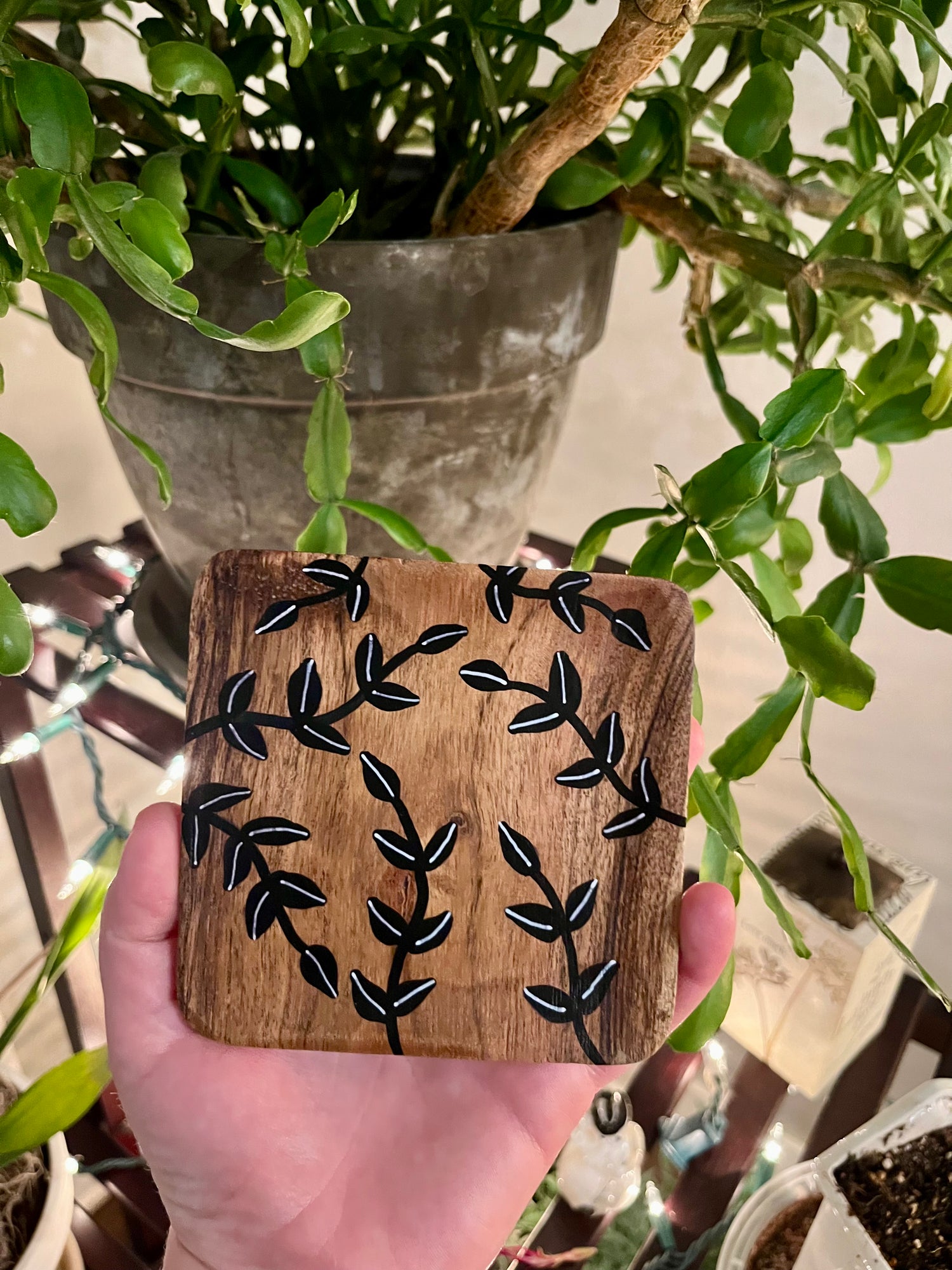 Local artist and art educator brings new life to wooden coasters. Perfect gift for a loved one or ready to spruce up your living space!