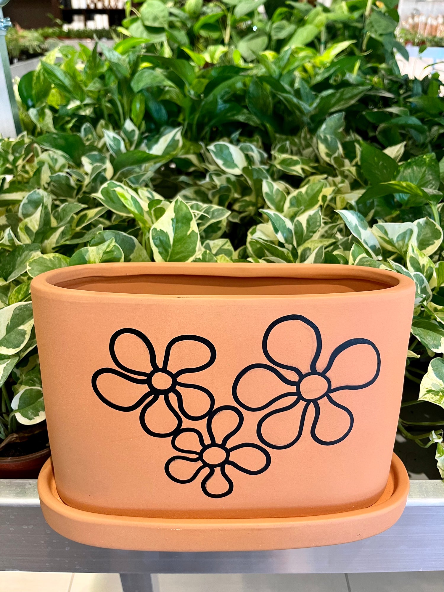 Bring a little art into your home with these unique, hand-painted pots, crafted by a local artist and educator! For a touch of whimsical functionality, these terra cotta beauties are sure to add style and creativity to any home.