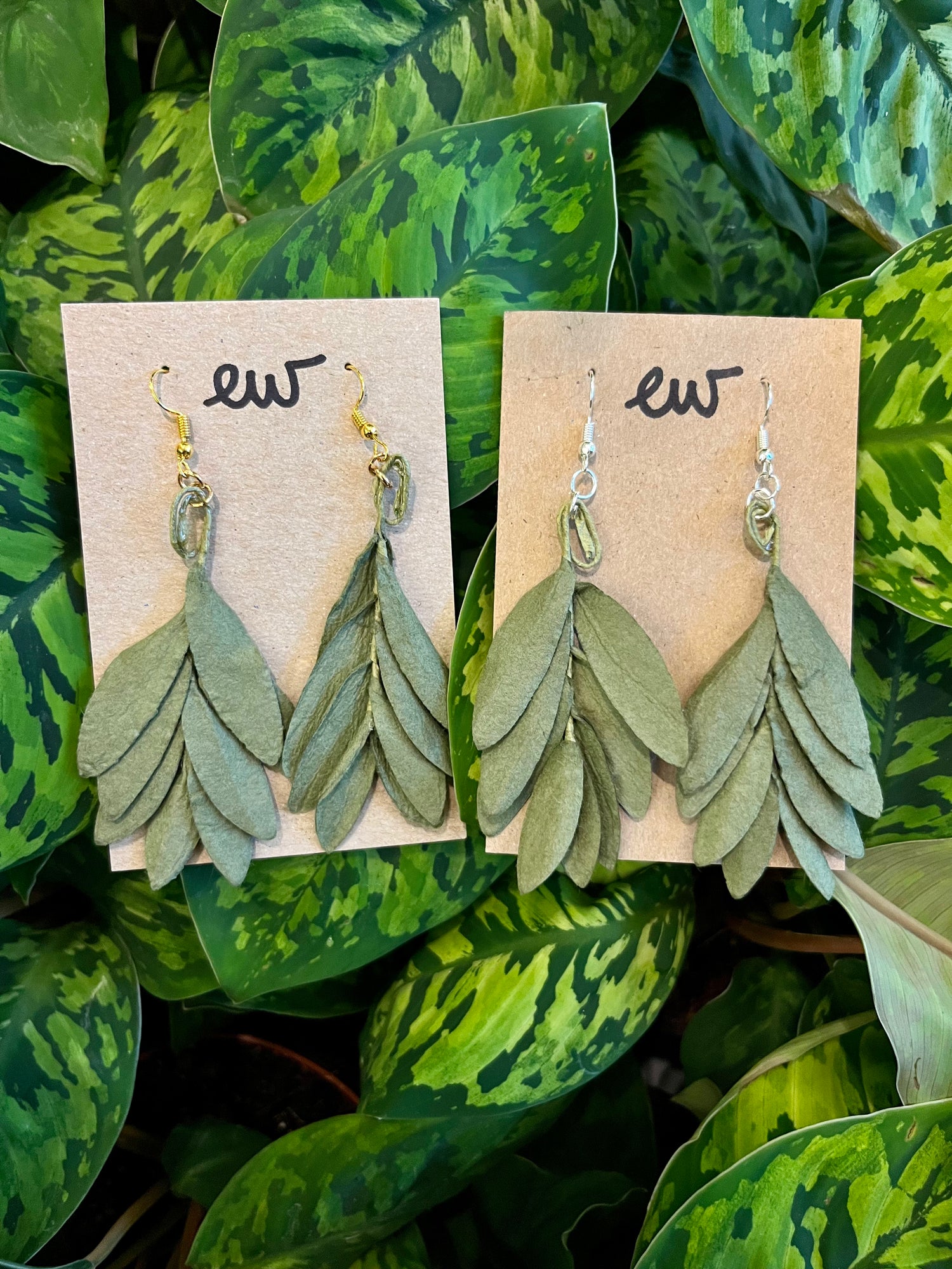 Show off your style with these unique leaf earrings by local artist and educator Artfully EW. These earrings are sure to make you stand out. Blossoming into a fashion statement!