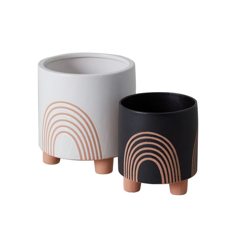 Featuring a two-tone finish with speckled white glaze and bisque rainbow and feet, the Asha Pot is on-trend and timeless in equal measure.
