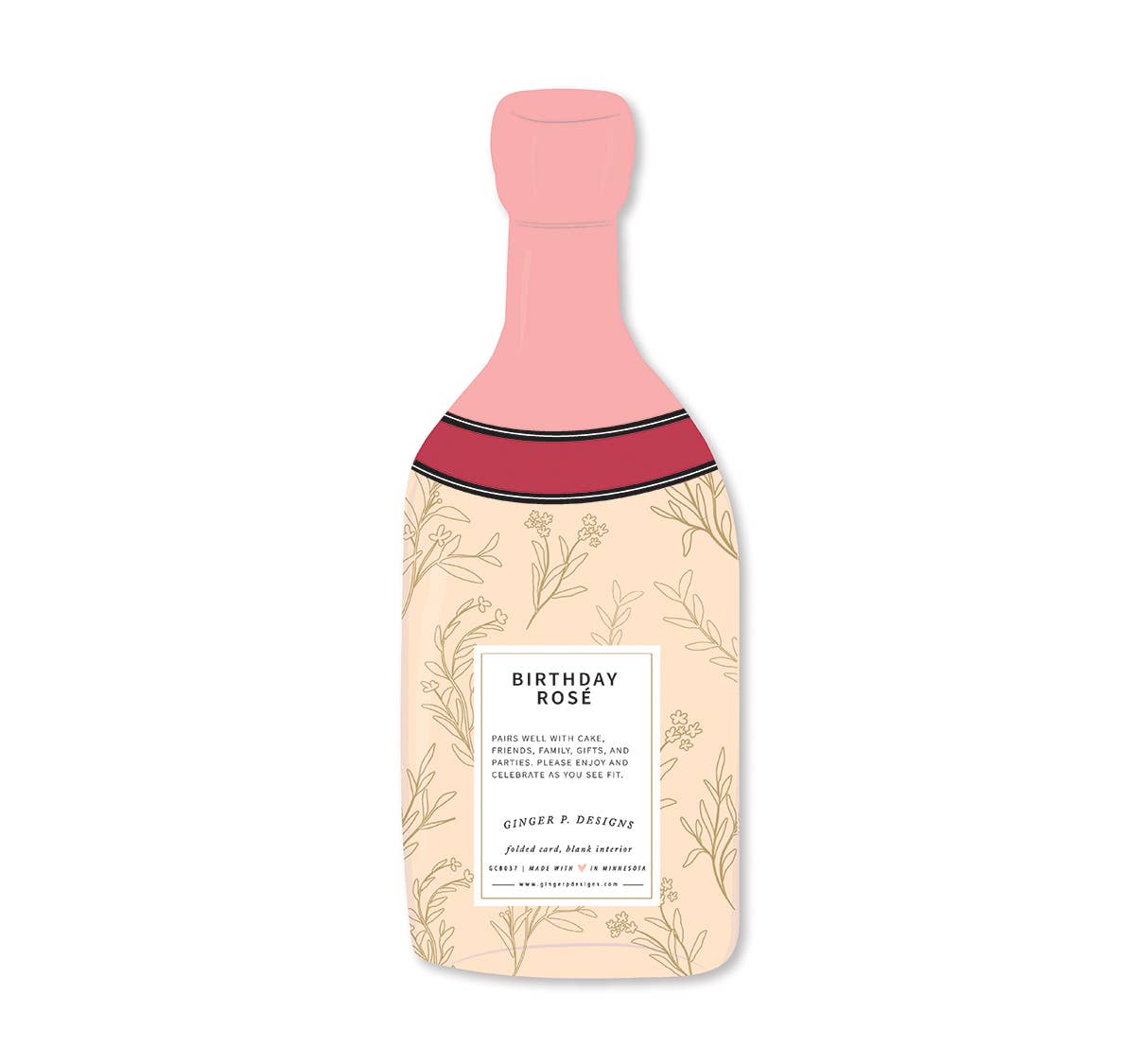 A bottle of rosé in paper form is the ultimate birthday card! And we love the added details on the back that describe the "contents" of the rosé.Folded, die-cut greeting card comes with #10 ivory envelope.
