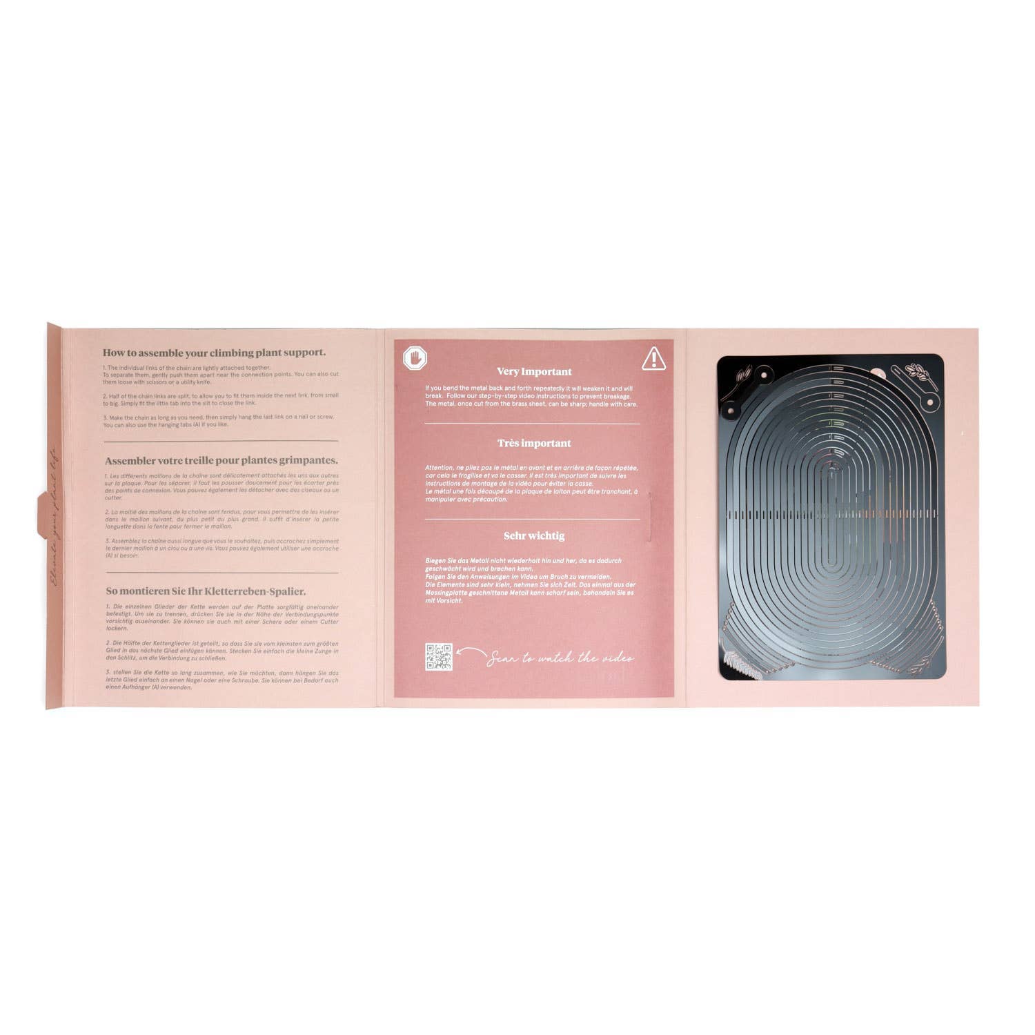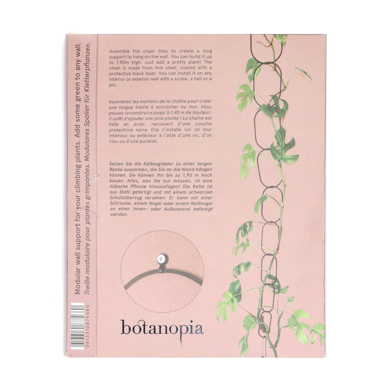 Assembly required: pop the rings off and link them together. Hang the lightweight brass structure from a wall using a push pin, screw or nail. You can make the modular chain reach up to 1m90 high. (check the video in the listing to see how it's done)