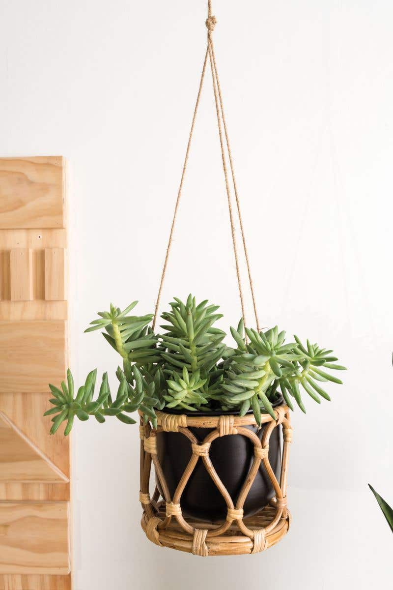 The Boca Plant Stand elevates any plant to just the right height with a curved metal pot that drops into a rattan base.