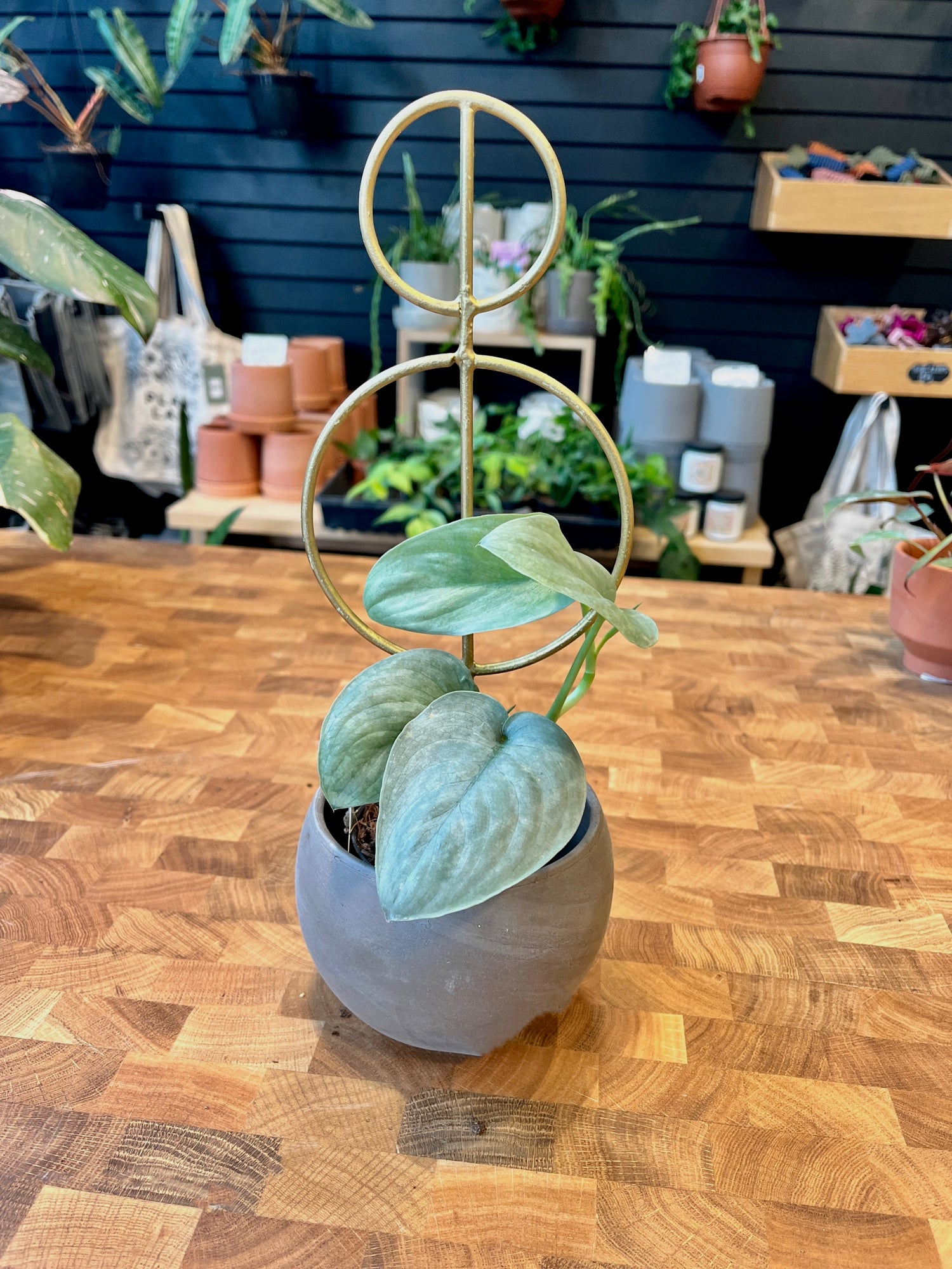 The Borromean Trellis is an artful trio of circles in gold, understated and easy-to-use. Versatile, but designed for use in 4-6” pots.