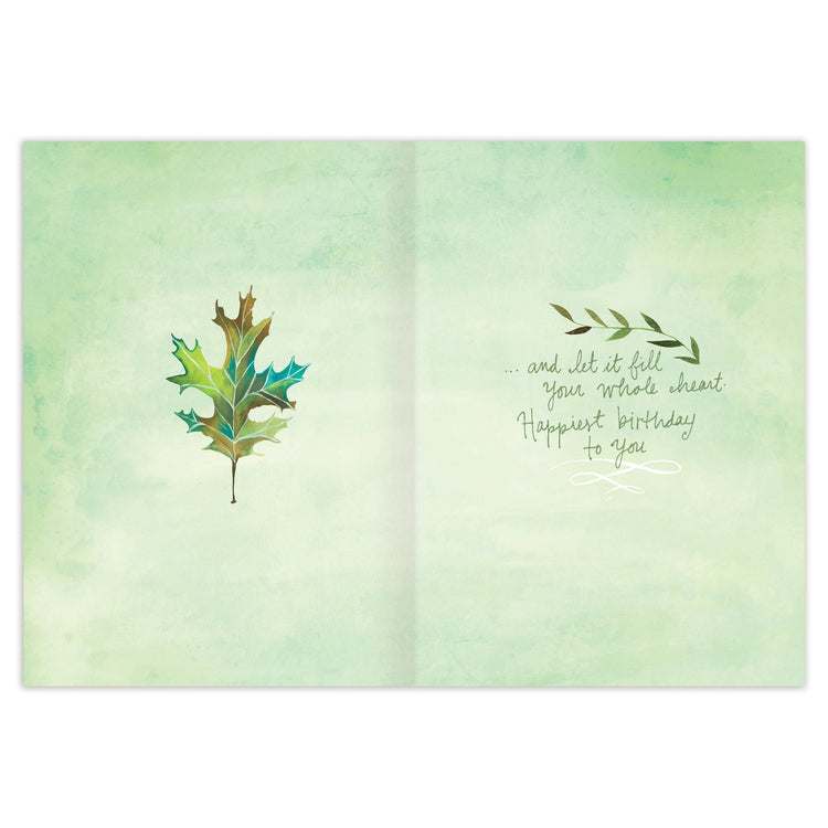Inside verse: ...and let it fill your whole heart. Happiest birthday to you. • Size: A6, 4.6" x 6.4" • Illustrated by Katie Daisy • Full-color inside • Envelope color: Brown Kraft • Printed in the USA on high-quality recycled post-consumer waste paper