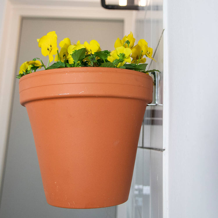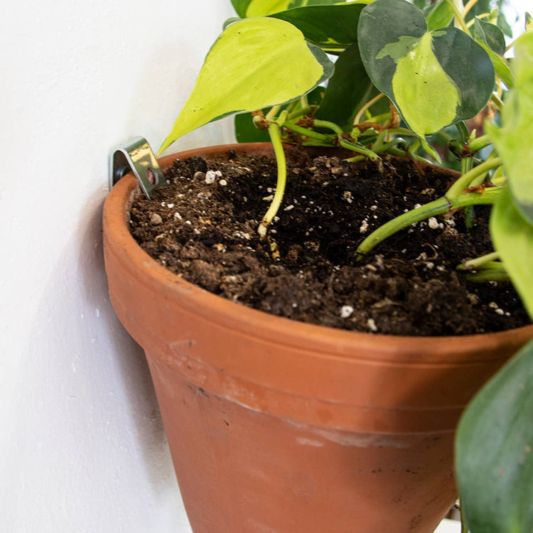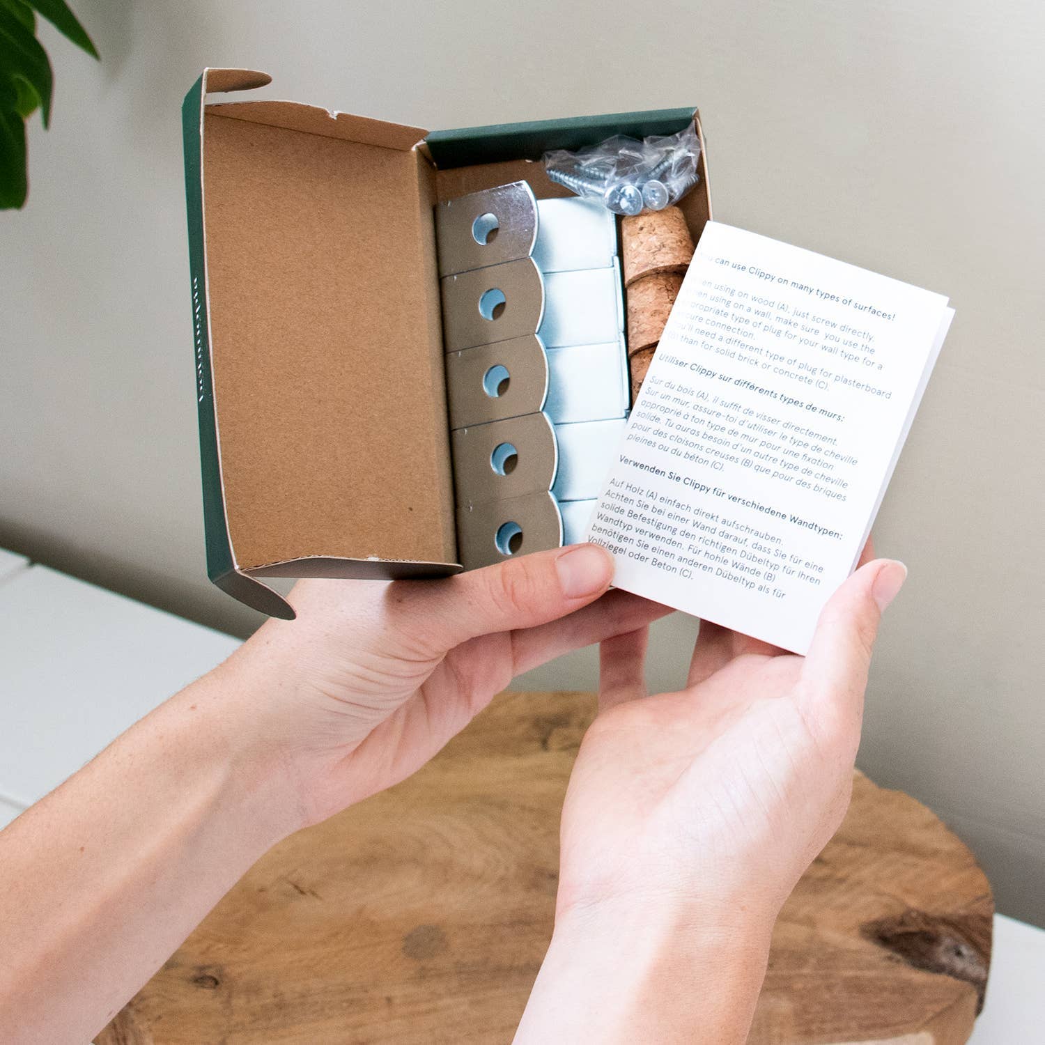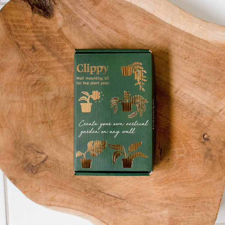Create your magical vertical garden Clippy is our wall mounting kit that will help you create the plant wall of your dreams. Use the set of 5 metal clips to decorate your walls, small balcony or other narrow spaces with plant pots. Your walls will never look boring again. Clippy is easy to use. Screw the clip into the wall with the mounting screws (included) and slide your pot onto it. You’ll need a pot with a rim to do so, most classic terracotta pots have one. Clippy is designed to hold pots with a diameter of 18 to 22 cm. Watch our Clippy video tutorial for some pointers on attaching your metal wall planter set to different surfaces like wood, plaster or concrete. Also included in the Clippy set: cork plugs to seal your drainage holes when using the wall mounting kit for indoor pots. The cork plugs are suitable for drainage holes with a diameter of ø 17 to 22 mm. Trust us, your little army of floating pots will become a unique part of your home that you’ll love.