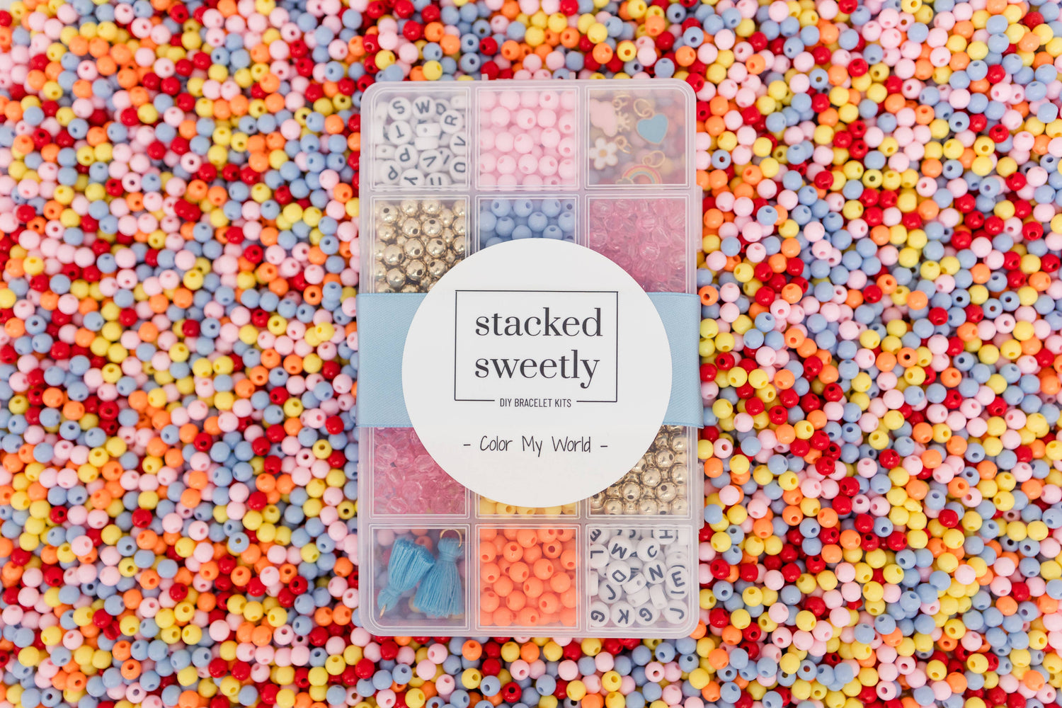 Have fun creating your own stretchy bracelets with our Color My World DIY bracelet craft kit! Get creative with everything you'll need to make a variety of stretchy bracelets with words. Looking for the perfect gift for a fellow crafter? These DIY stretchy bracelet craft kits come with a sturdy storage box that’s great for gifting!