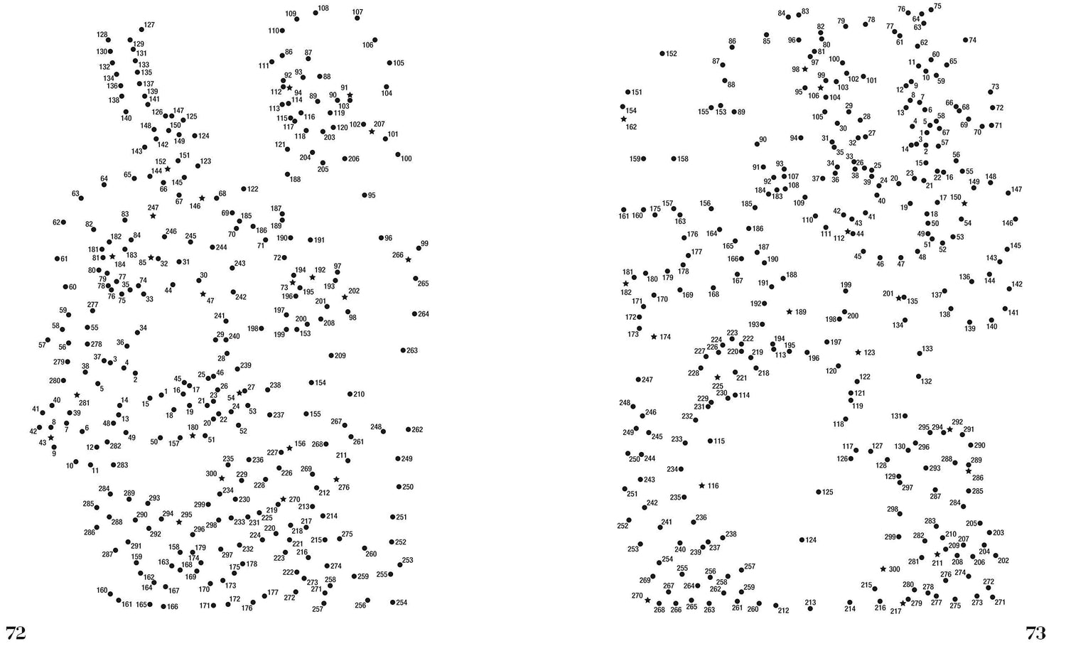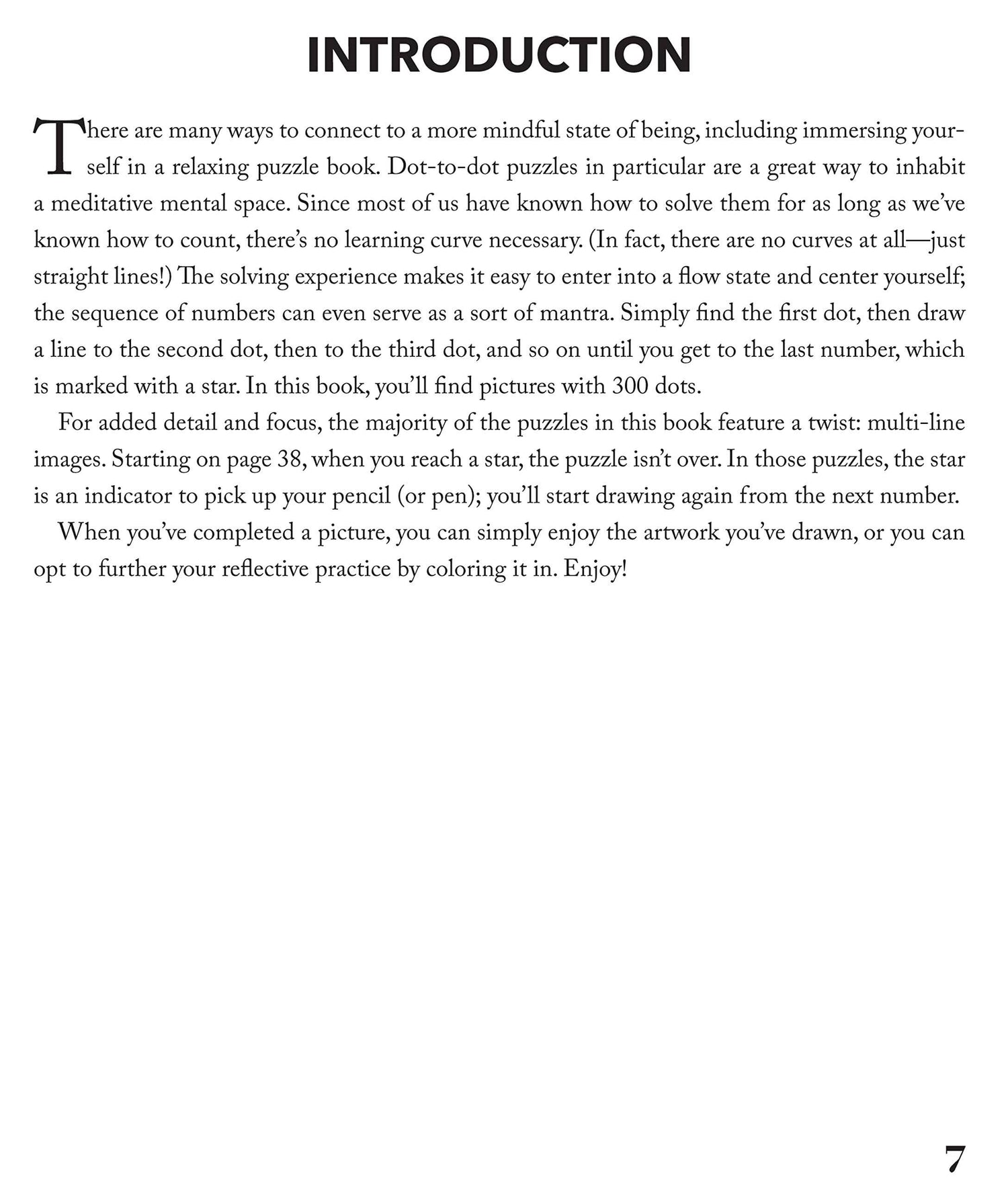 A source of serenity that you can count on! These dot-to-dot puzzles are perfect for stepping back from the cares of the day and entering a peaceful, artistic world. When completed, they reveal intricate pictures, from people to animals to landscapes—and solvers can extend the experience by coloring in the artwork when they're done. With 122 dot-to-dots in each book, these collections offer many, many hours of relaxation. In addition to regular dot-to-dot puzzles, "multi-line" puzzles are also featured, in which you lift your pencil from the page between certain dots, allowing for more detailed pictures. Paperback Book with Concealed Spiral; 8 x 10 inches; 192 pages.