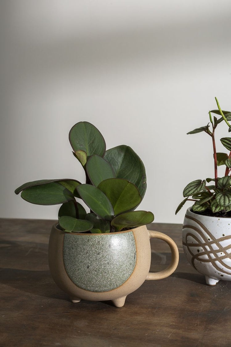 The Daylight Mug is a rounded mug in a duo-toned glazed and speckled finish, with an ergonomic handle for an artful yet practical addition to our kitchen collection. Food-safe and beautiful, the Daylight Mug is perfect for your morning cup of coffee or hosting succulents or small plants alike. Holds 16 oz.