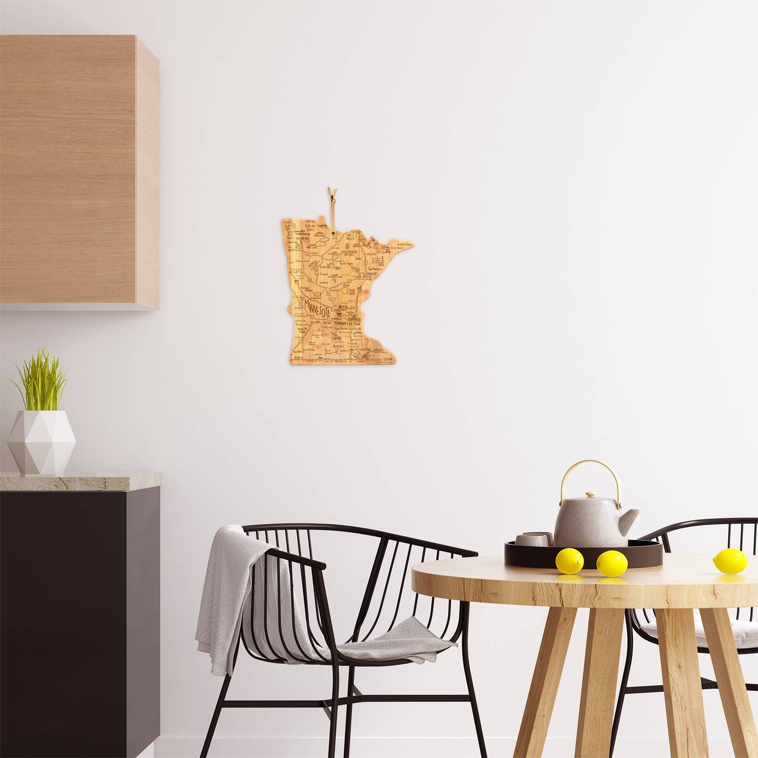 Celebrate Minnesota with this beautifully crafted bamboo cutting board! Shaped like The North Star State, it features laser-engraved artwork highlighting the iconic towns, landmarks, and sights that define Minnesota. Shoppers love using it as a fun, conversation-starting charcuterie board for serving crackers, cheese, meat, fruit, candy, and other favorite snacks.