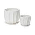 The Draken Pot features a smooth white finish with raised grooves to add organic style to a simple silhouette. A drainage hole and simple saucer make it an everyday staple with an extra dose of style.
