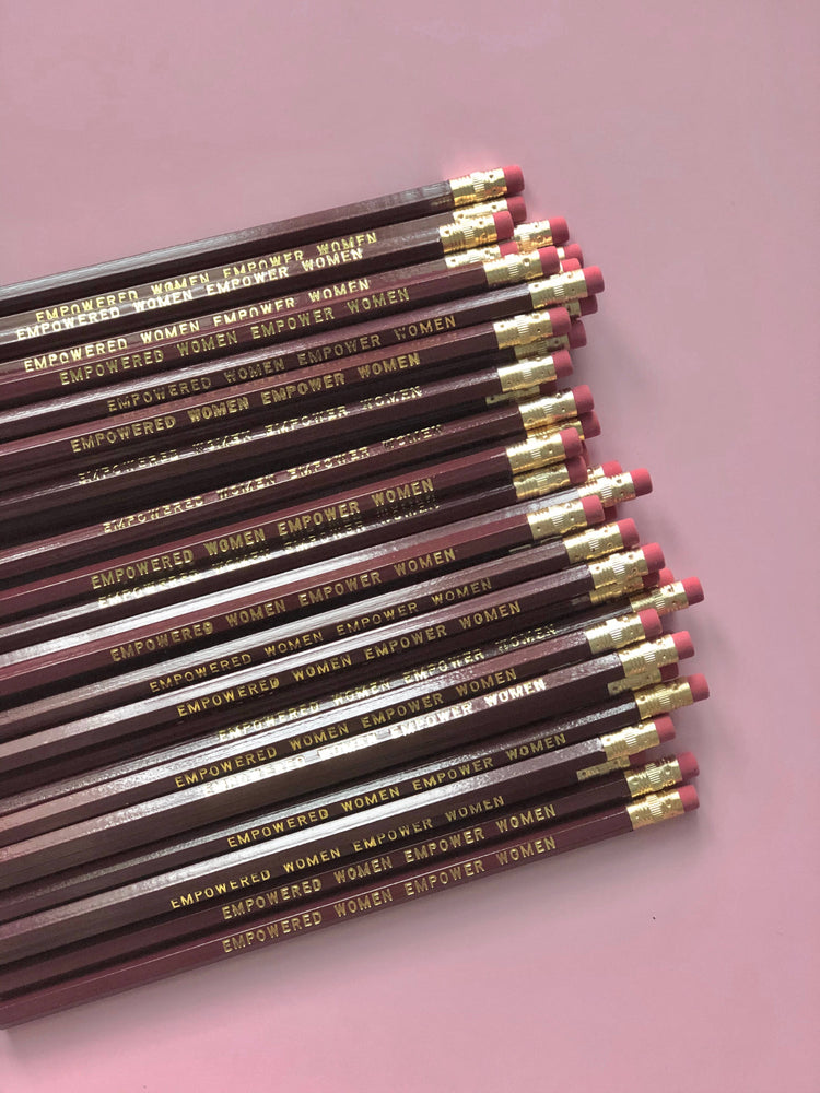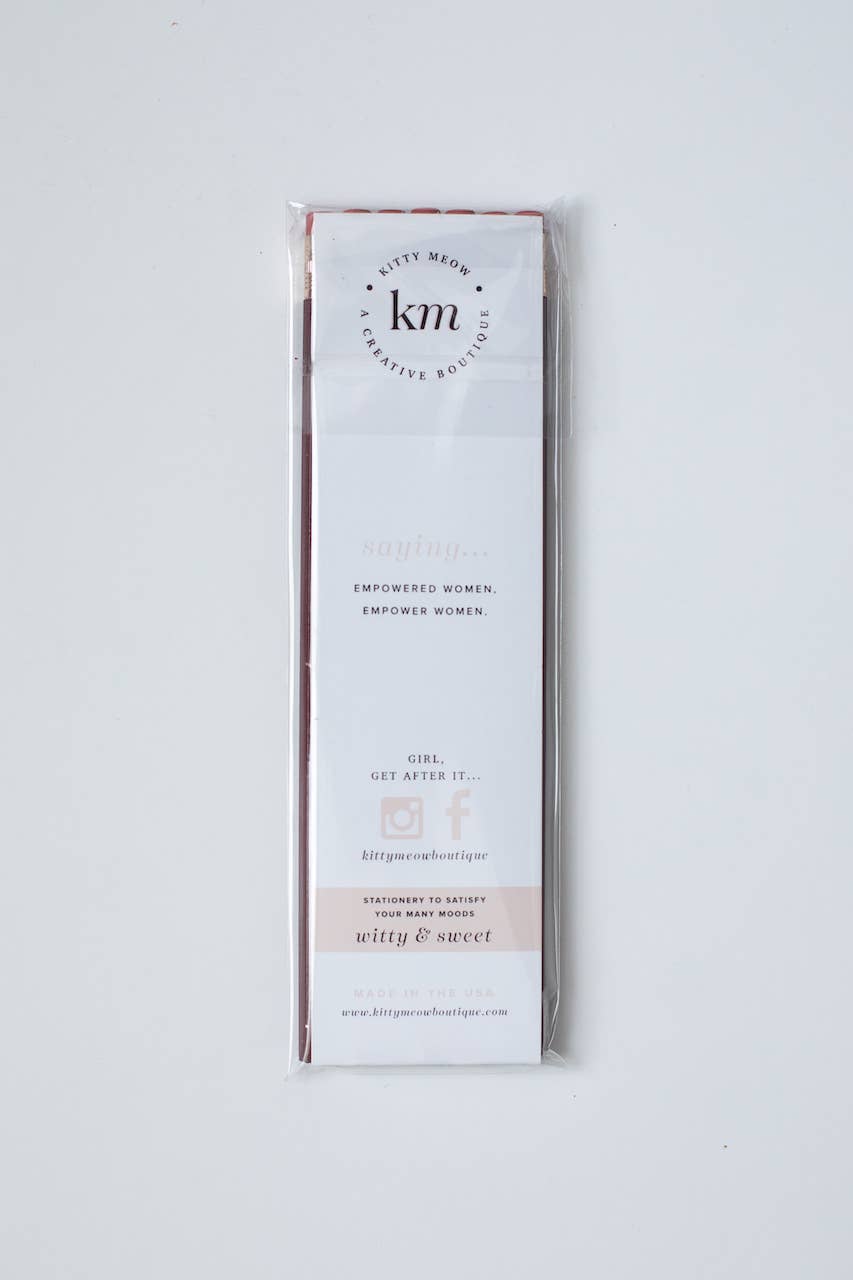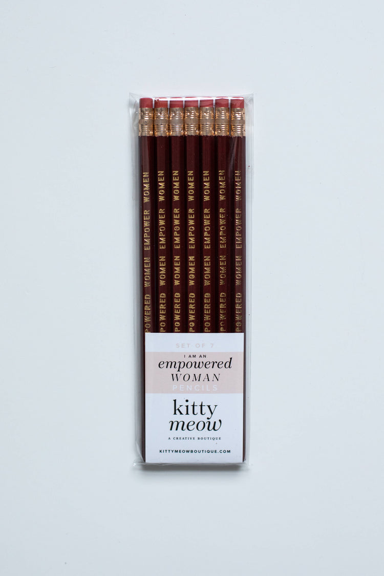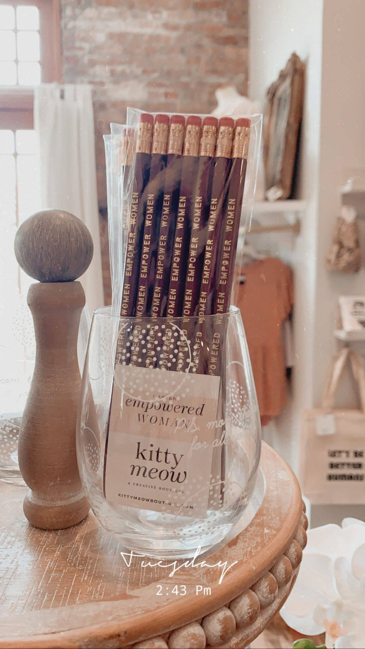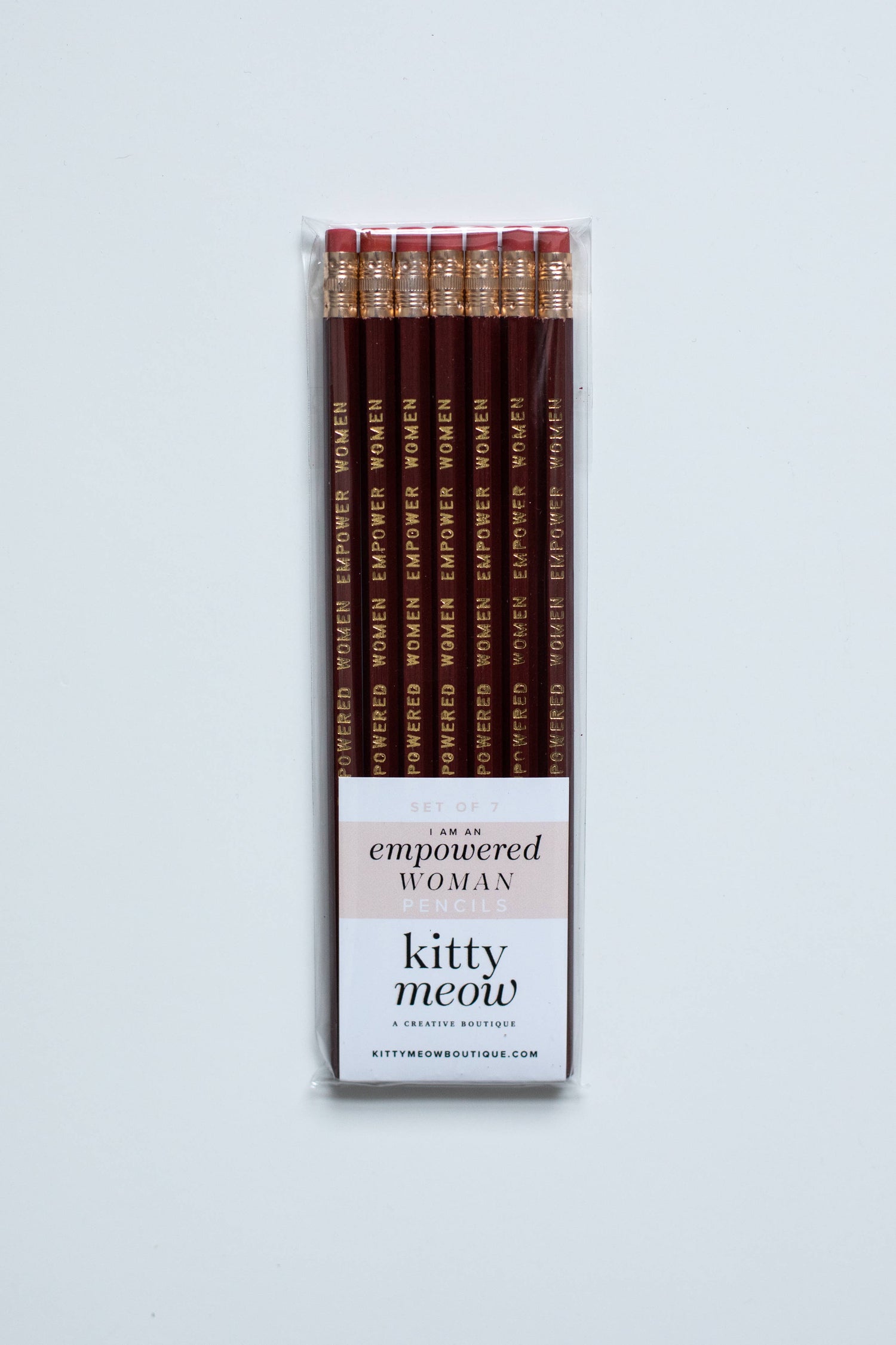 Introducing Kitty Meow’s Empowered Women EMPOWER WOMEN Pencil Gift Set. Set of 7 Pencils sealed cello sleeve with a wrapped, Kitty Meow Boutique branded packaging inside. Set of 7 includes: (7) Empowered Women Empower Women