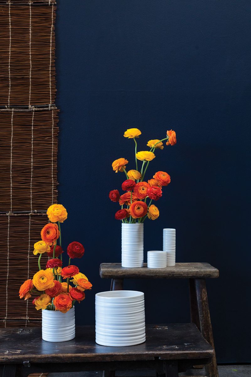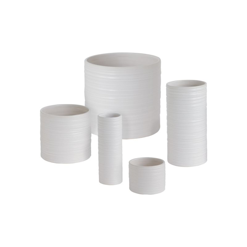 Simple striated ceramic pot in a matte white glaze, modern and perfect for home decor or florals.