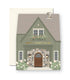 A sweet new die-cut home folded greeting card and coordinating envelope to congratulate new homeowners! Text written in a gold foil to accent the beautiful card.