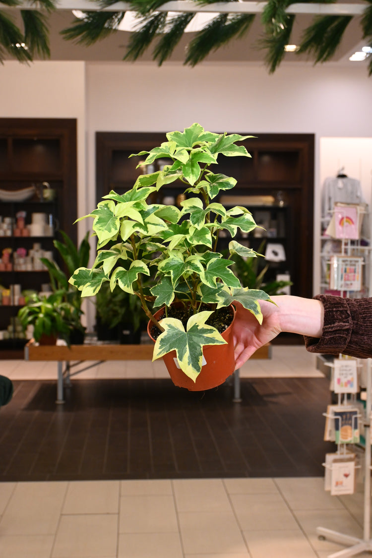 Hedera Marengo, a unique variety of English Ivy, boasts glossy medium sized three lobed leaves with striking white margins. This ornamental plant will not only add visual appeal to any space, but its distinct color is sure to make a statement. Widely used for its attractive appearance, this plant is a must-have for any indoor or outdoor setting.