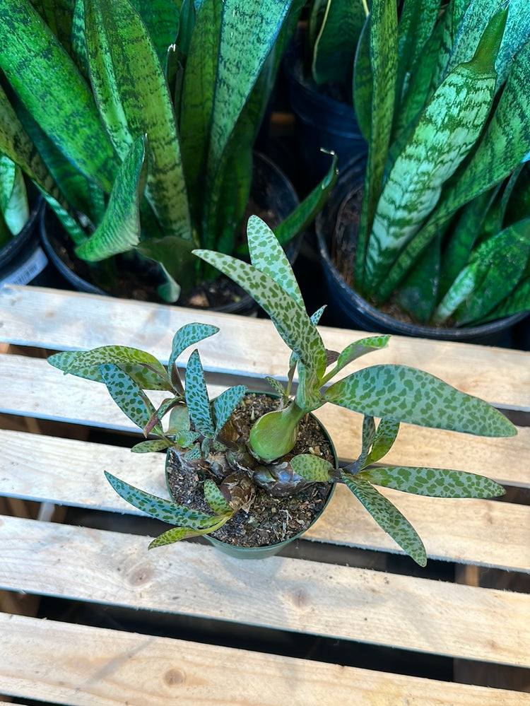 Leopard Lilies love a humid environment with bright, filtered light. Keep them in a chunky potting mix and water when the soil is dry 2" from the top of the pot.