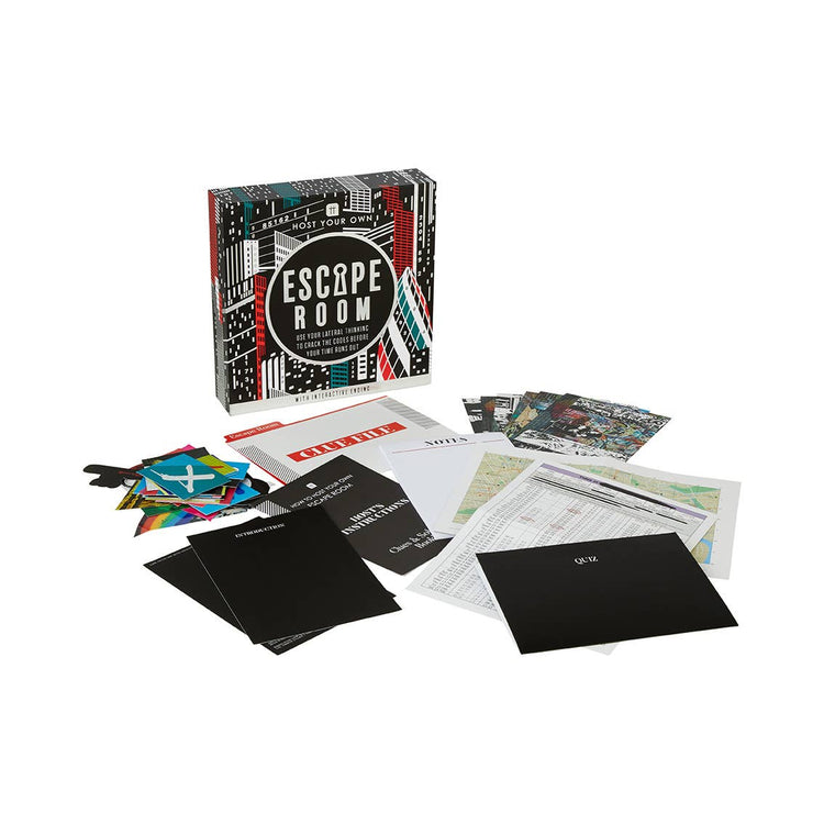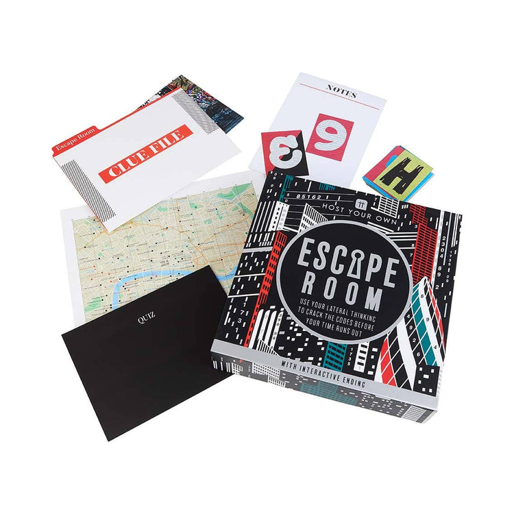 London Escape Room Game by Talking Tables. Trapped together inside exclusive London gallery Grafix, you have 60 minutes to use your lateral thinking skills to locate the artist who has been taken hostage before the time is up. Solve the sequence of riddles, clues and conundrums, then input your answers in the unique interactive ending to find out whether you have cracked the codes and escaped the room. Great for families or groups of friends looking for a fun evening of entertainment- no knowledge of London needed. Contents includes: An Instruction booklet, 47x Game Play Clues, 1 x Clue File, 1x Notepad, 1x Interactive Ending and a Photobooth Frame. Recommended for age 16+ and 2-6 players.