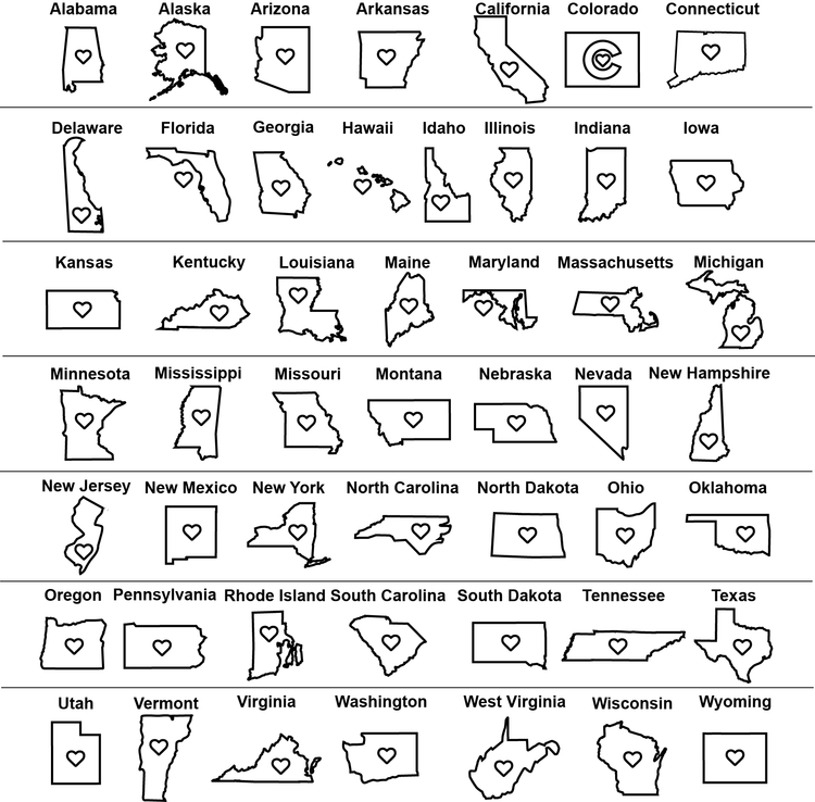 *Graphics are engraved and color may vary in shade. State mock-ups below are digital graphic examples for size and shape.