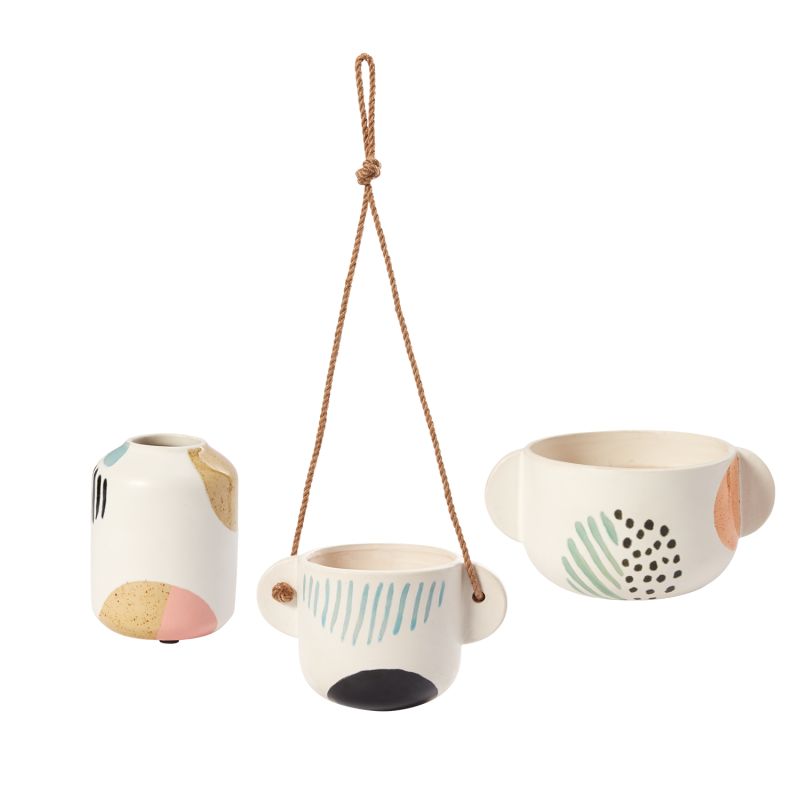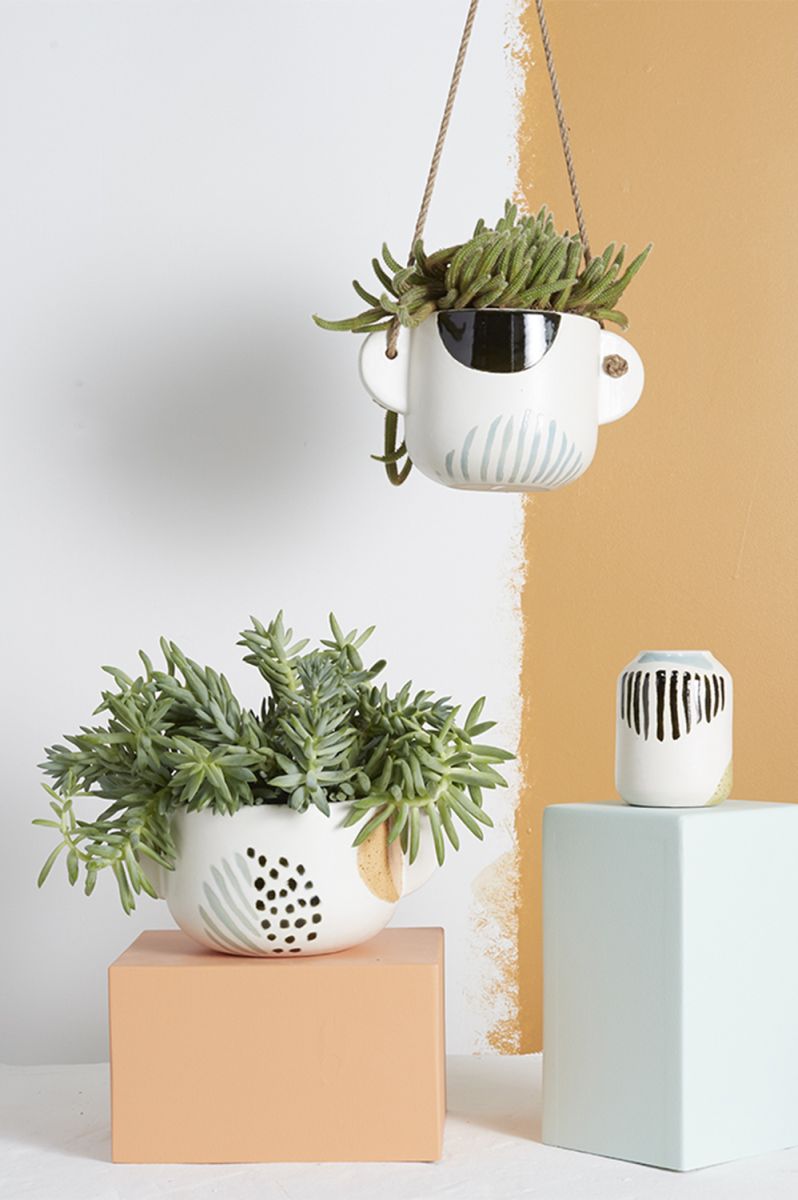 Mahalo Pot is perfect for any lush house plant while the Mahalo Hanging Pot is a bowl shaped container suspended from two points on either side.