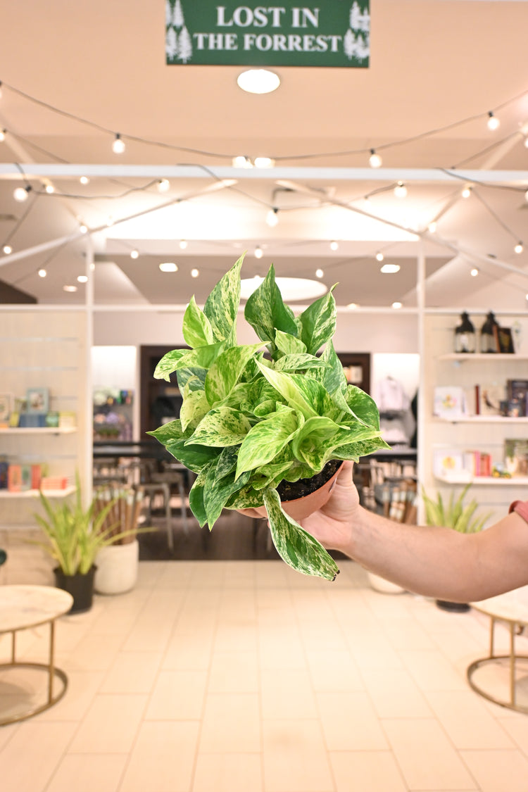 Pothos, Epipremnum, Scindapsus plants are some of the easiest out there. They can tolerate low light, and are drought tolerant. Water when the soil is dry about 50%. Keep them in a well-aerated soil.