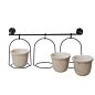 Style and substance coexist on the walls with the Meliora Hanging Pots. The 3 natural ceramic, neutral matte glazed pots (no drainage holes) are welded into place onto the metal hanger with a black finish so they don't slide or bump the wall.