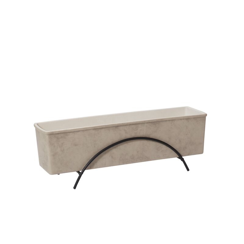 Style and substance are a stunning pair with the Meliora Trough with Arched Stand. The natural ceramic, neutral matte glazed pot (no drainage hole) sits in the black metal stand. Style on the floor or on surfaces to create dimension in your decor.