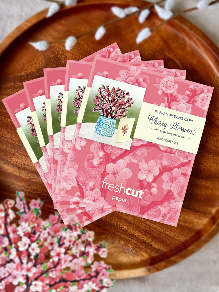 Mini Cherry Blossom (10 Flowers with envelope, notecard). Each pop up flower card includes a small blank coordinating notecard.