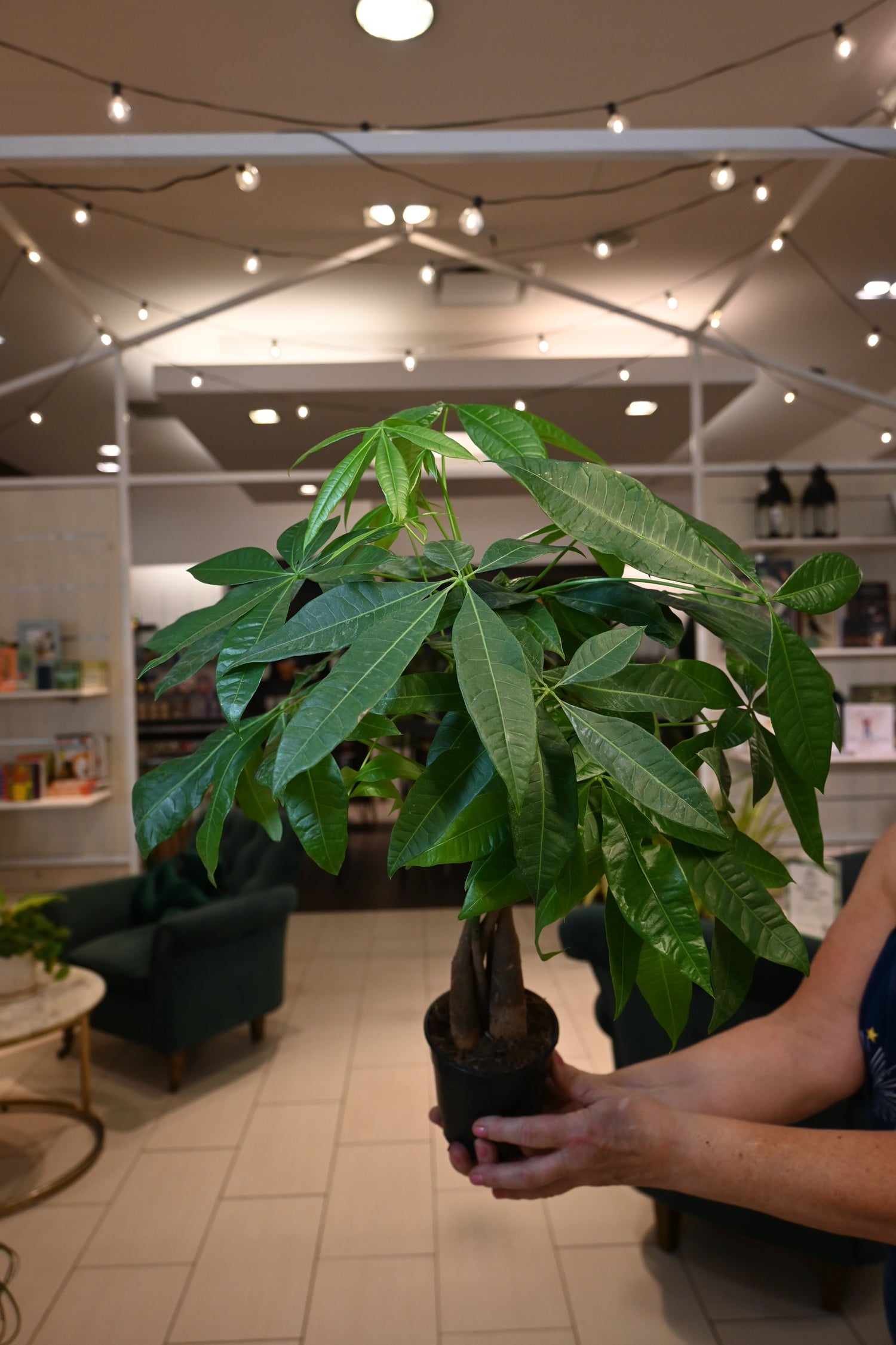 Money Tree plants are pet friendly! They love a humidly and bright but filtered growing environment. Keep them in a chunky potting mix and allow the top 2" of the soil to dry out between waterings.