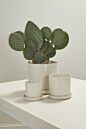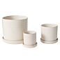 Always on trend and effortlessly functional, the Morse Pot with Saucer is a glossy, warm white pot with a hint of natural clay that peeks through the beautiful glaze. Subtle texture surrounds this pot in shallow horizontal divots that span from top to bottom. With a drainage hole and roomy saucer, a 6-inch standard drop in plant will be happy to be planted directly into the Morse Pot. Add all 3 sizes to a collection of neutral vessels for an elevated plant presentation.