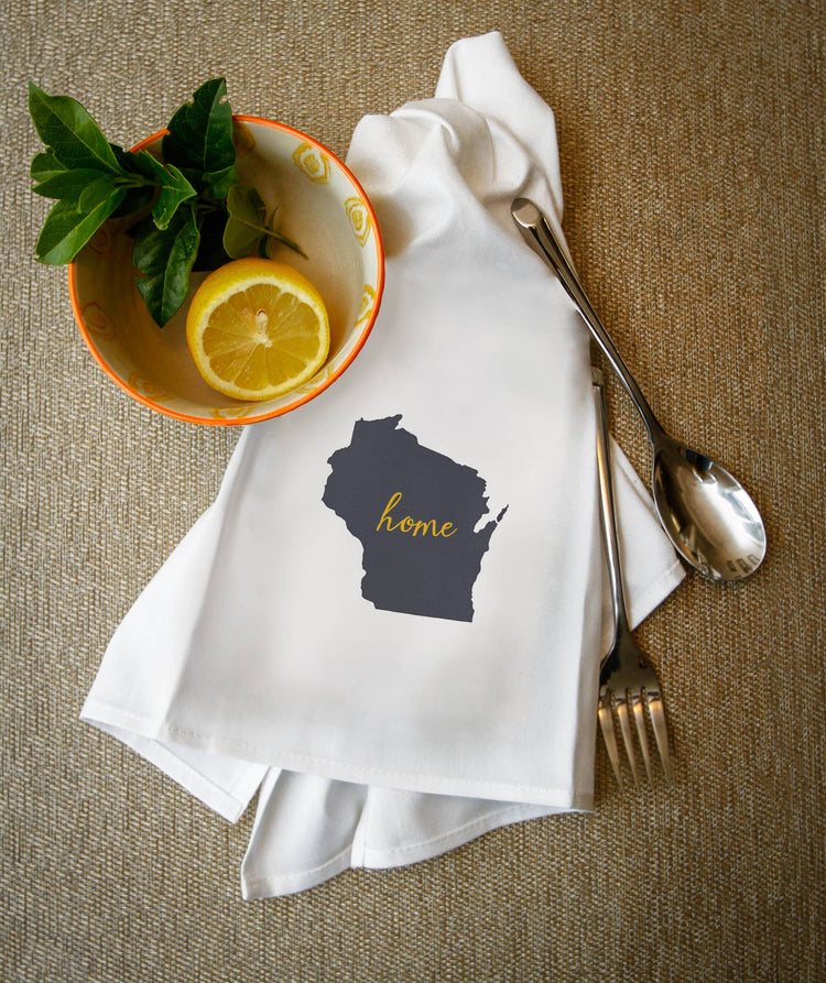 ORGANIC TEA TOWEL Wisconsin, Home State, White: Organic Tea Towel