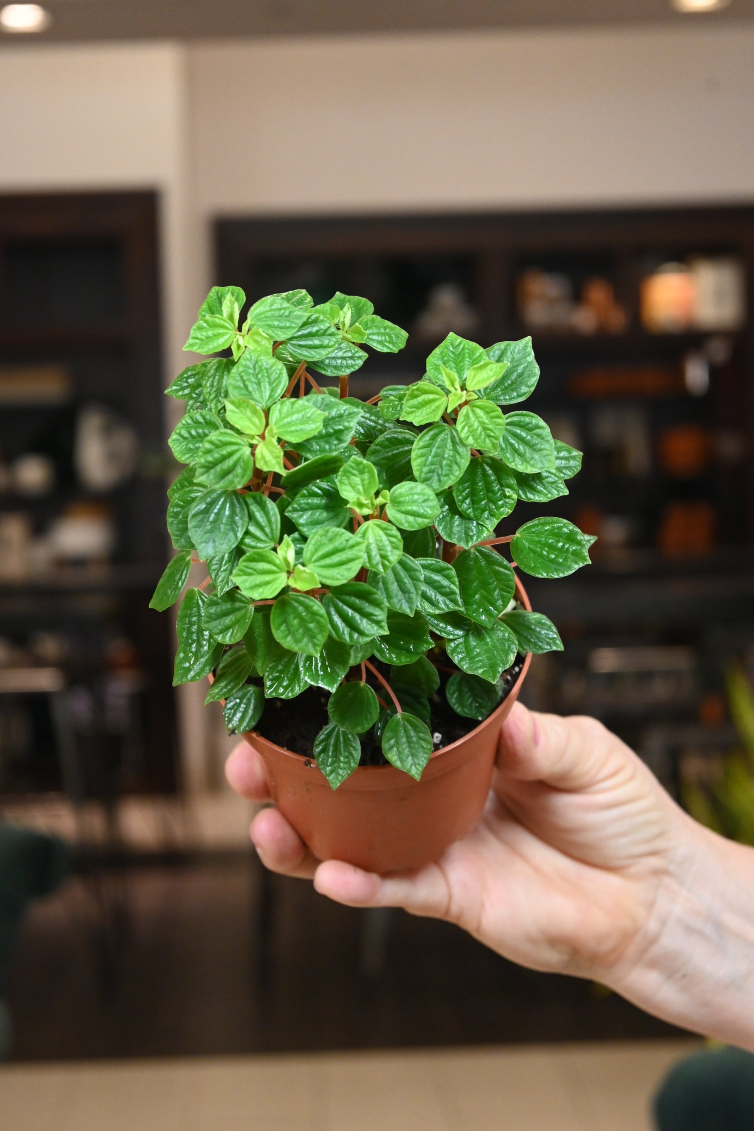 Peperomia plants crave high humidity and lots of sunlight! Keep them in a chunky potting mix and allow it to dry out between waterings.